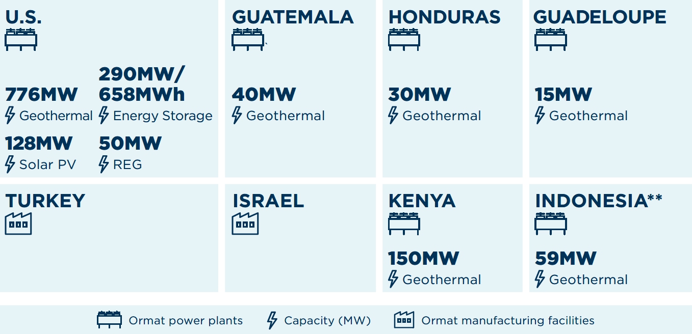 在Ormat,我们一直在为我们的客户全天候和世界各地提供可再生能源和能源解决方案。由地热发电、回收能源以及太阳能光伏(“PV”)和储能解决方案提供的清洁、可靠的能源解决方案,是我们的专长、承诺和重点。
