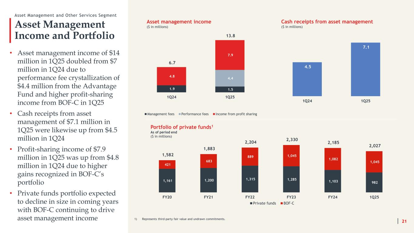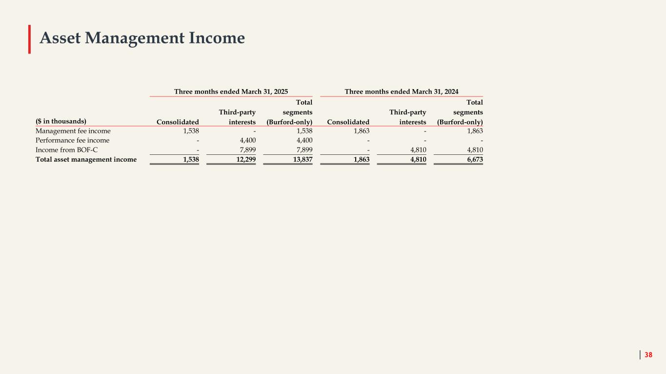 资产管理收入38截至2025年3月31日的三个月截至2024年3月31日的三个月第三方分部总额第三方分部(千美元)合并权益(仅伯福德)合并权益(仅伯福德)管理费收入1,538-1,5381,863-1,863业绩费收入-4,4004,400---来自BOF-C的收入-7,8997,899-4,8104,810资产管理收入总额1,53812,29913,8371,8634,8106,673