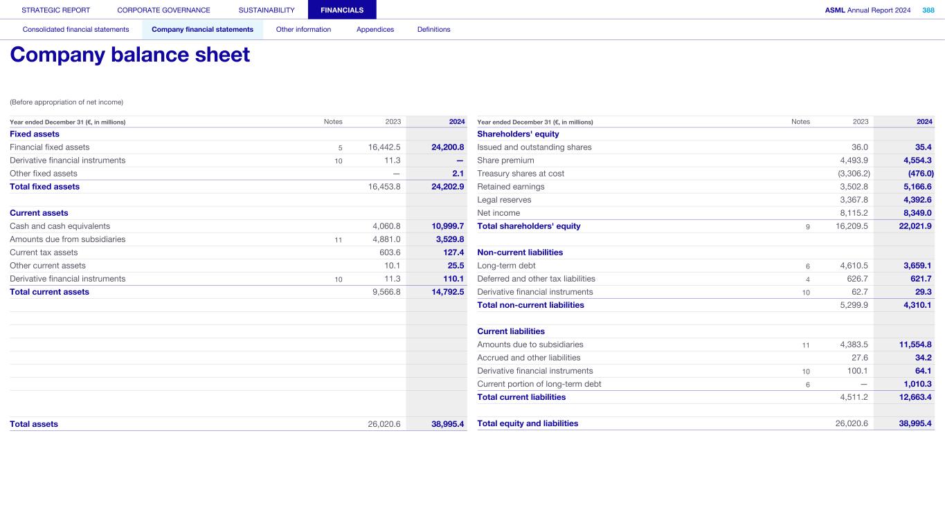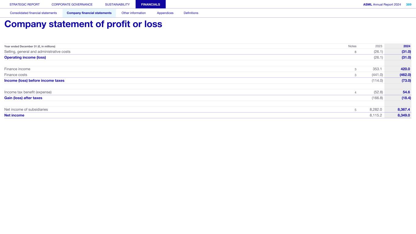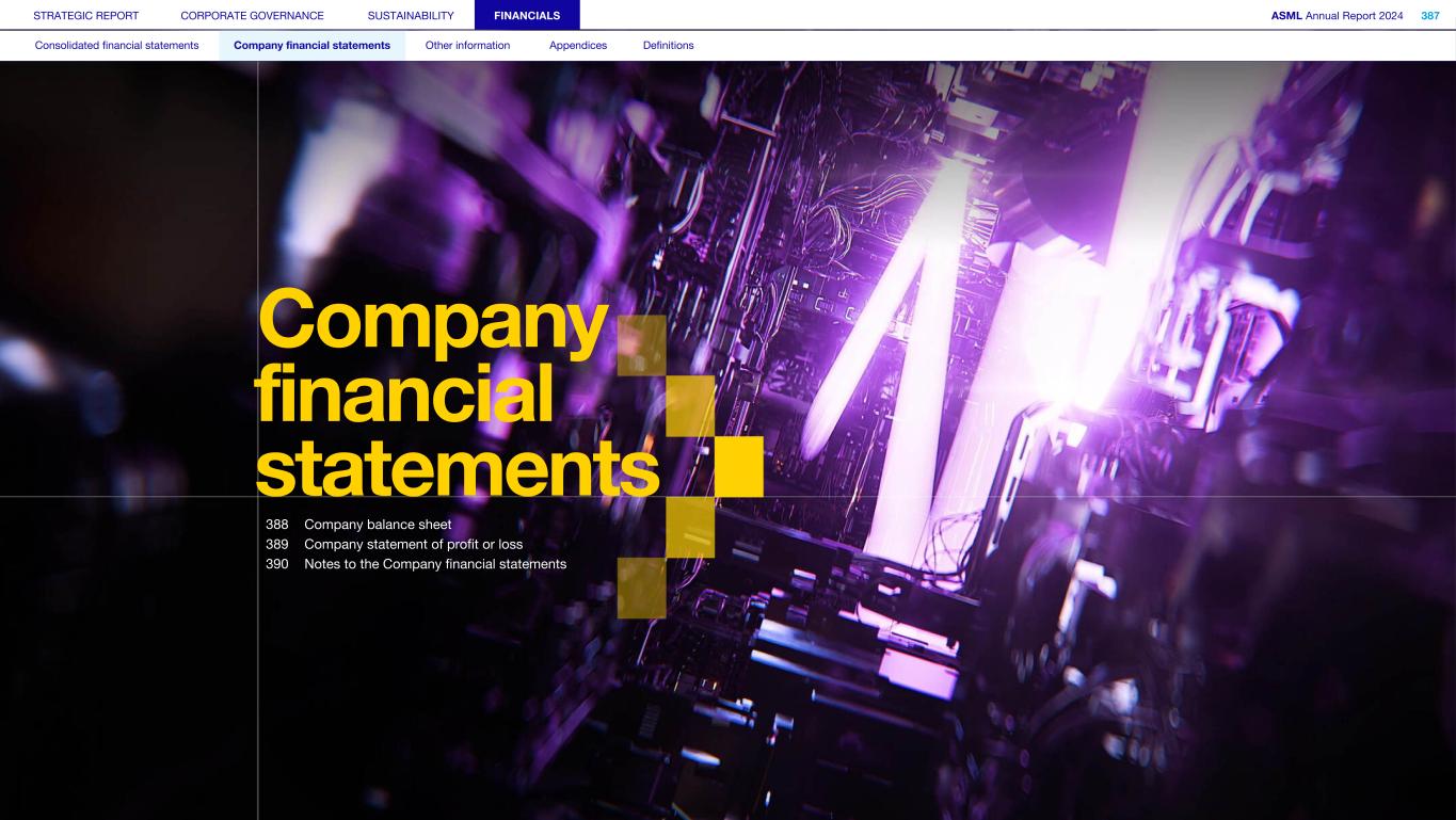 战略报告公司治理可持续发展财务ASML年度报告2024387合并财务报表公司财务报表其他信息附录定义公司财务报表388公司资产负债表389公司损益表390公司财务报表附注