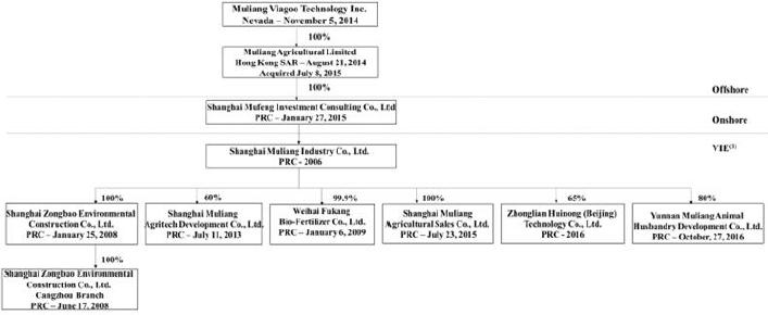 Muliang Viagoo不是一家中国运营公司,而是一家根据内华达州法律注册成立的控股公司。作为一家控股公司,我们自己没有重大业务,我们通过我们在中华人民共和国的子公司,或“中国”或“中国”开展绝大多数业务。上海沐风,或WFOE,我们在中国的子公司,从上海沐量,VIE,及其子公司获得其经济利益。我们通过某些合同安排获得VIE及其子公司业务运营的经济利益。