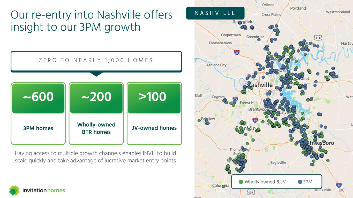 80拥有多种增长渠道使INVH能够快速建立规模并利用利润丰厚的市场切入点Z E R O T O N E A R L Y 1,000 H O M E S全资和合资企业下午3点下午3点的住宅全资贝特瑞住宅合资企业-自有住宅~600~200 > 100我们重新进入纳什维尔提供了对我们下午3点的增长N A S H V I L L E的洞察