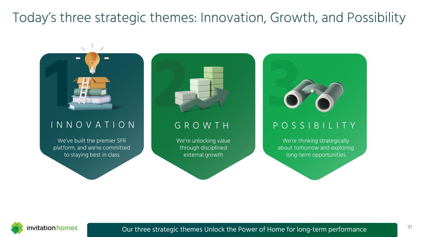 91今日三大战略主题:创新、成长、可能性1 I N N O V A T I O N G R O W T H P O S I B I L I T Y我们已经构建了首屈一指的SFR平台,我们致力于保持一流水平我们正在通过有纪律的外部增长释放价值我们正在战略性地思考明天并探索长期机会我们的三大战略主题为长期业绩释放家的力量