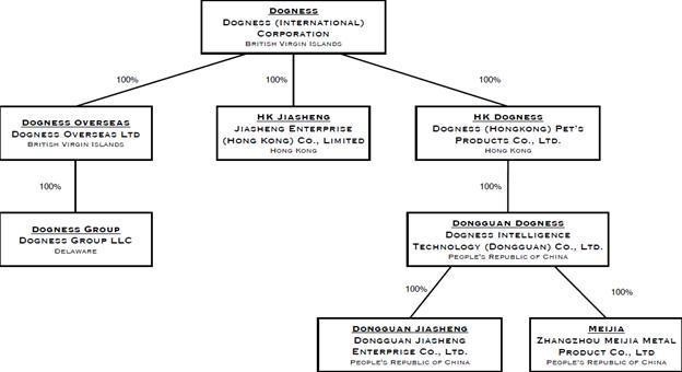 除非另有说明或文意另有所指,否则本招股章程所提述的“中国”或“中国”指中华人民共和国大陆、台湾、中华人民共和国香港特别行政区(“香港特别行政区”或“香港”)、澳门特别行政区(仅就本招股章程而言);“中国大陆”指中华人民共和国大陆,不包括台湾香港、澳门(仅就本招股章程而言);“中国大陆子公司”指我们在中国大陆注册成立的子公司,包括多尼斯智能科技(东莞)有限公司,中国大陆公司(“东莞嘉盛”)、中国大陆公司东莞嘉盛企业有限公司(“东莞嘉盛”)、中国大陆公司漳州美佳金属制品有限公司(“美佳”)、中国大陆公司Dogness Intelligence Technology Co.,Ltd(“Intelligence Guangzhou”);“香港子公司”指我们在香港注册成立的子公司,包括香港公司嘉盛企业(香港)有限公司(“香港嘉盛”)和香港公司Dogness(Hongkong)Pet’s Products Co.,Limited(“HK Dogness”)。我们也会把我们所有的子公司,称为“子公司”。