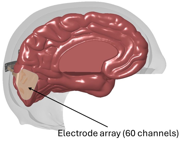 我们设计Orion是为了让更多因多种原因而失明的个体群体能够获得人工视觉,包括青光眼、糖尿病视网膜病变、视神经损伤或疾病和眼部损伤。Orion利用我们在用于人工视觉的精准、靶向神经刺激方面20多年的经验。它旨在绕过患病或受伤的视觉通路,将电脉冲无线传输到植入大脑视觉皮层表面的电极阵列,以提供对光的模式的感知(见图1)。需要进行颅骨手术,将电极阵列放置在大脑表面;Orion系统的设计是为了不需要穿透大脑。2017年,FDA指定Orion为突破性设备。这为Cortigent提供了更好的获得FDA专家工作人员指导的机会,并可能加速我们获得商业批准的道路。