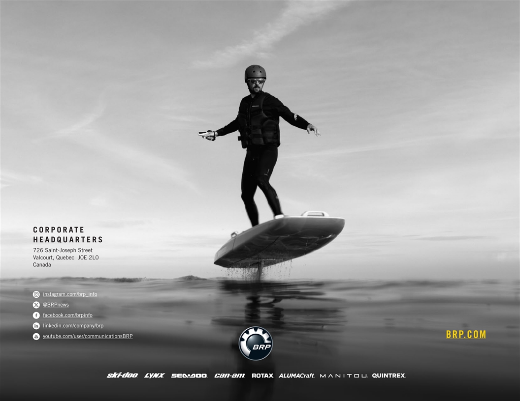CORPORA TE总部726 Saint-Joseph Street Valcourt,Quebec J0E 2L0 Canada instagram.com/brp _ info @ BRPnews facebook.com/brpinfo linkedin.com/company/brp youtube.com/user/communicationsBRP BRP.COM