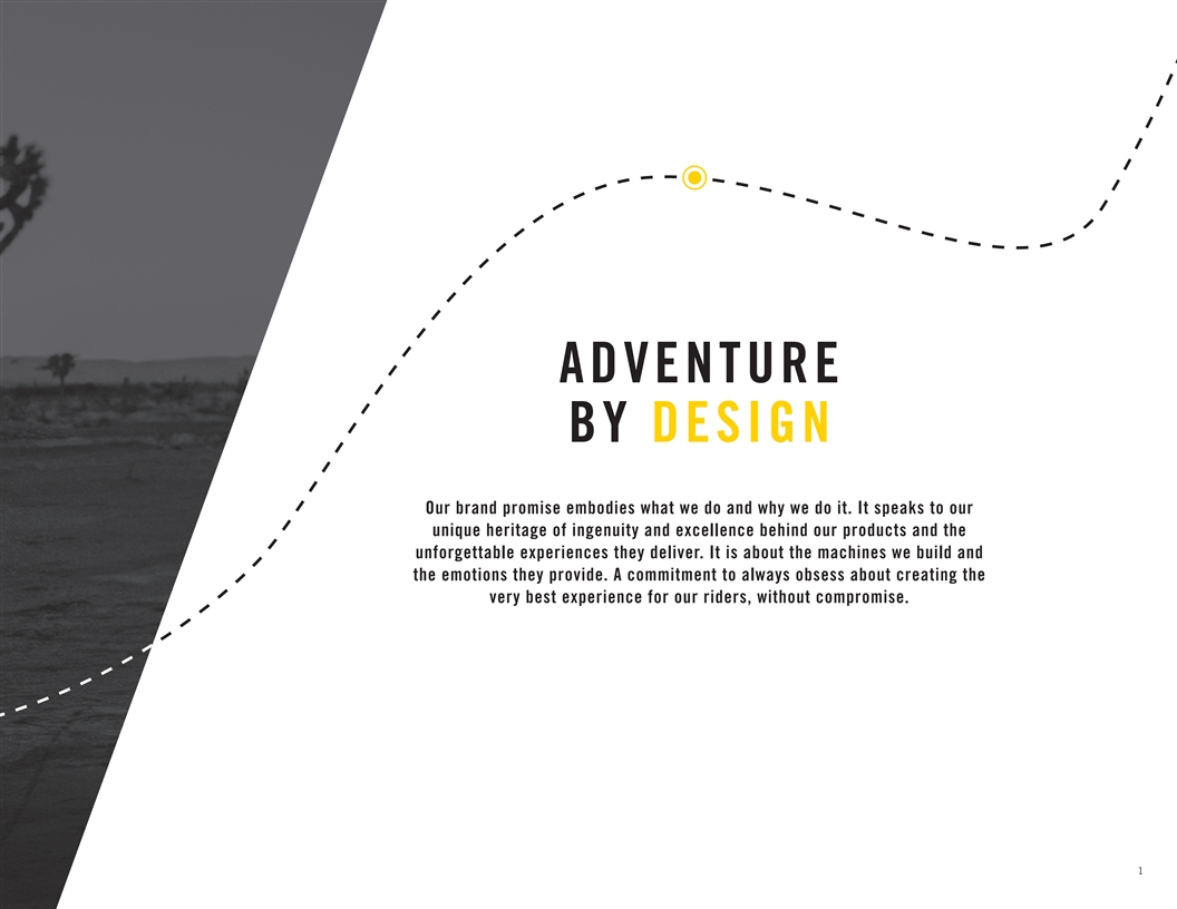Adventure by design我们的品牌承诺体现了我们所做的事情以及我们这样做的原因。它说明了我们产品背后的独创性和卓越的独特传统,以及它们提供的令人难忘的体验。这事关我们制造的机器和它们提供的情感。承诺始终执着于为我们的骑手创造最好的体验,毫不妥协。1