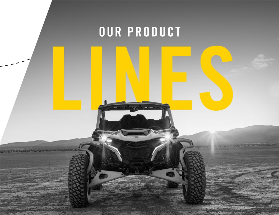 市场动力指标截至2024年1月31日止年度的年度全球销售产生了数百万美元的收入5,339.4 加利福尼亚州美元凭借开创性的产品阵容,我们全年的汽车全球销售继续为骑手提供最佳体验。在VS FY23 th 2023,Can-AM的50周年纪念标志着该品牌背后的人的庆祝活动,这些人锻造了它的DNA,并不断突破可能的极限。+10.6% 14