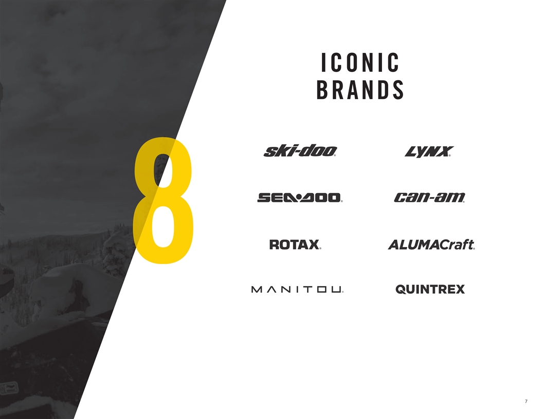 公司概览2-1 2-2(截至2024年1月31日)一个广泛的全球分销网络:一个独立的年度驱动、资源丰富的经销商国家,在这些国家,我们的TSX公司自从在全球范围内销售员工产品以来,DOO close NASDAQ to 2003 $ 10.4B 20,0002,800 + 130 + DOO0制造站点*分销商网络经销商网络*不包括某些站点,包括产品或服务仅以内部供应商身份提供给BRP的小型站点,例如St. Johns(美国6