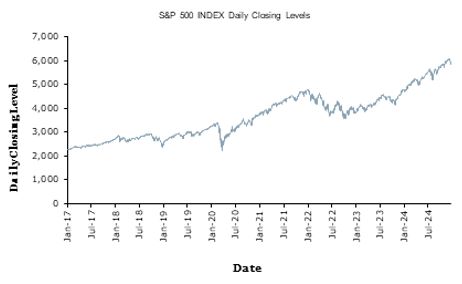 SPX为5,930.85(其初始值的100%);RTY为2,242.370(其初始值的100%);INDU为42,840.26(其初始值的100%)