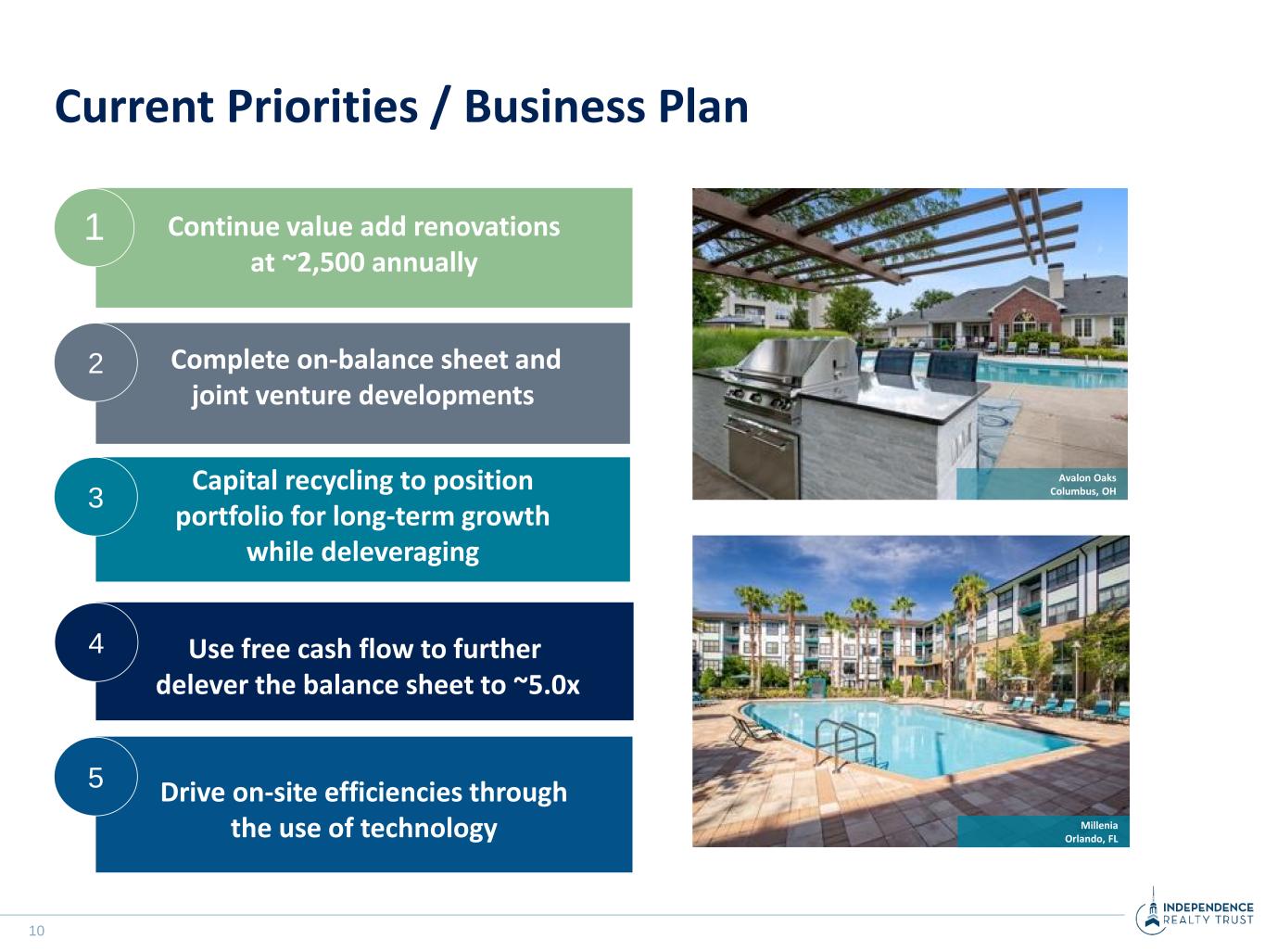 9资料来源:截至2024年11月11日的彭博市场数据。注:代表复合总回报,红利再投资。价值创造1年3年35% 5% 33% 32%-6 % 23% 69%-6 % 77% RMS多户家庭指数IRT 135% 195% 384%自IPO以来5年(1)(1)IRT拥有跑赢同业的可靠业绩记录