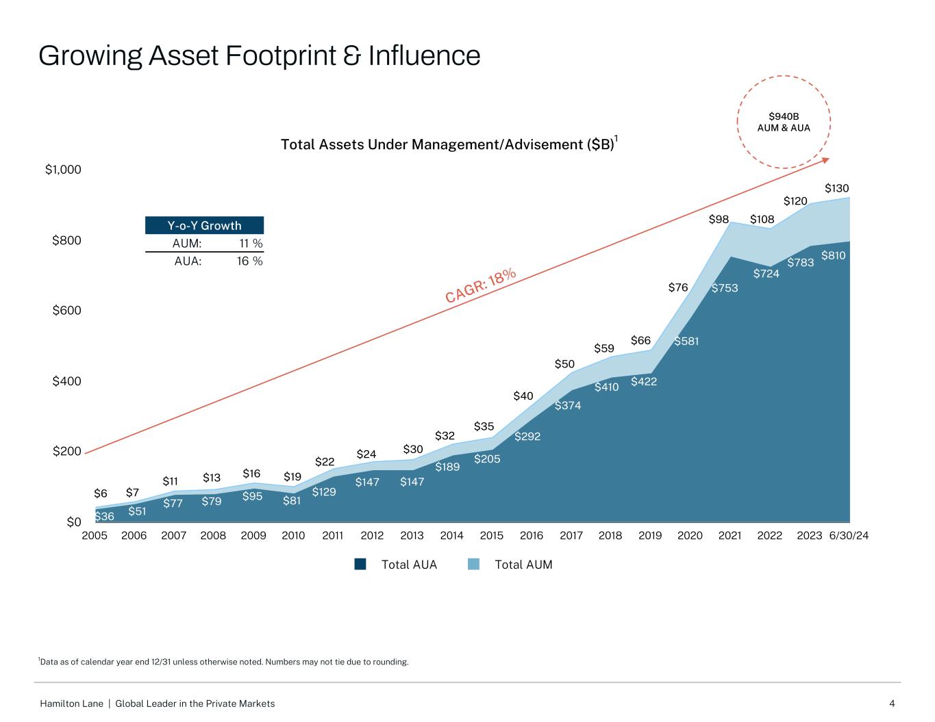 4 Hamilton Lane |全球私募市场领导者管理/顾问总资产($ B)总AUA总AUM 200520062007200820092010201120122013201420152016201620172018201920202021202220236/30/24 $ 0 $ 200 $ 400 $ 600 $ 800 $ 1,000同比增长AUM:11% AUA:16% $ 940B AUM & AUA1 CAGR:18% $ 6 $ 7 $ 11 $ 13 $ 16 $ 19 $ 22 $ 24 $ 30 $ 32 $ 35 $ 40 $ 50 $ 59 $ 66 $ 76 $ 98 $ 108 $ 36 $ 51 $ 77 $ 79 $ 95 $ 81 $ 129 $ 147 $ 189 $ 205 $ 292 $ 374 $ 410 $ 422 $ 581 $ 753 $ 724 $ 810 $ 130增长资产足迹& Influence 1Data as of calendar year end 12/31除非另有说明。由于四舍五入,数字可能不会打平。$783 $120