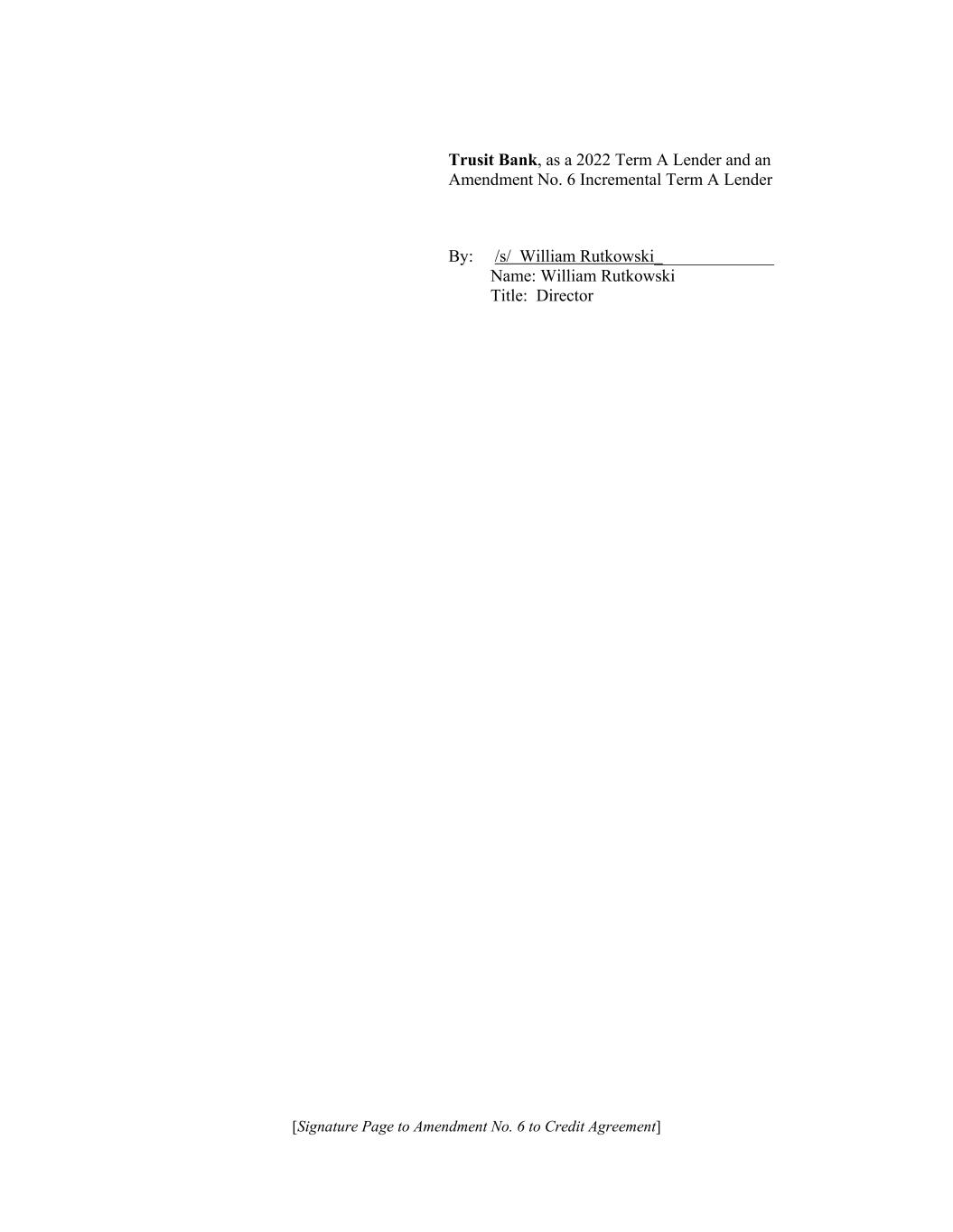 【信贷协议第6号修正案签署页】Trusit Bank,作为2022年期限A贷款人和第6号修正案增量期限A贷款人:/s/William Rutkowski ______________姓名:William Rutkowski职务:董事