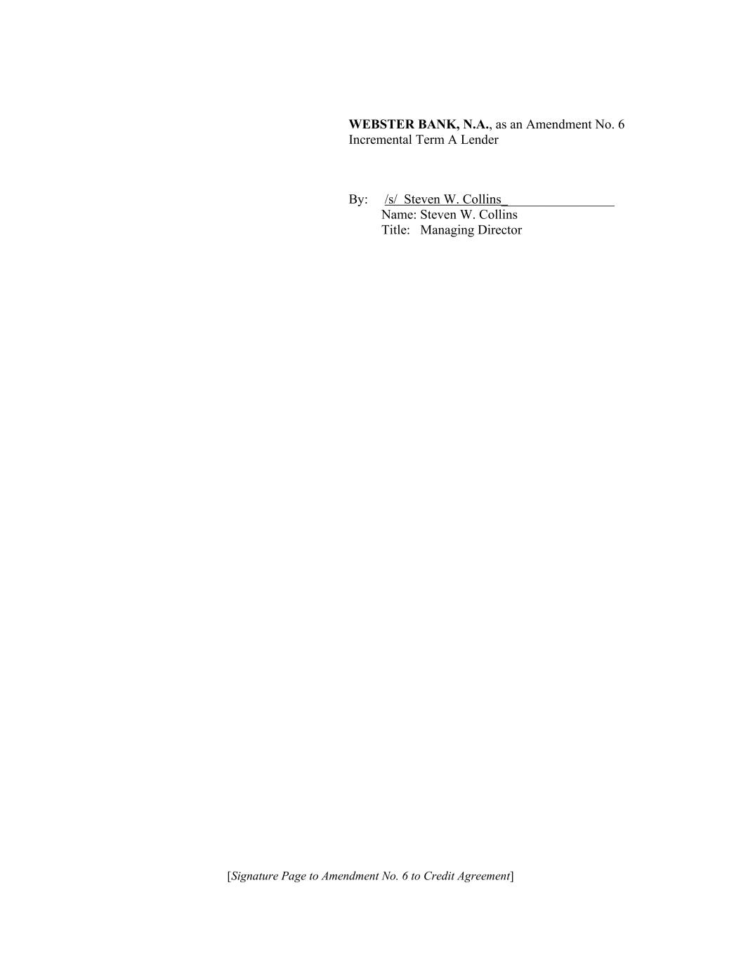 【信贷协议第6号修正案签署页】WEBSTER BANK,N.A.,作为第6号修正案增量期限贷款人:/s/Steven W. Collins ________________姓名:Steven W. Collins职务:董事总经理