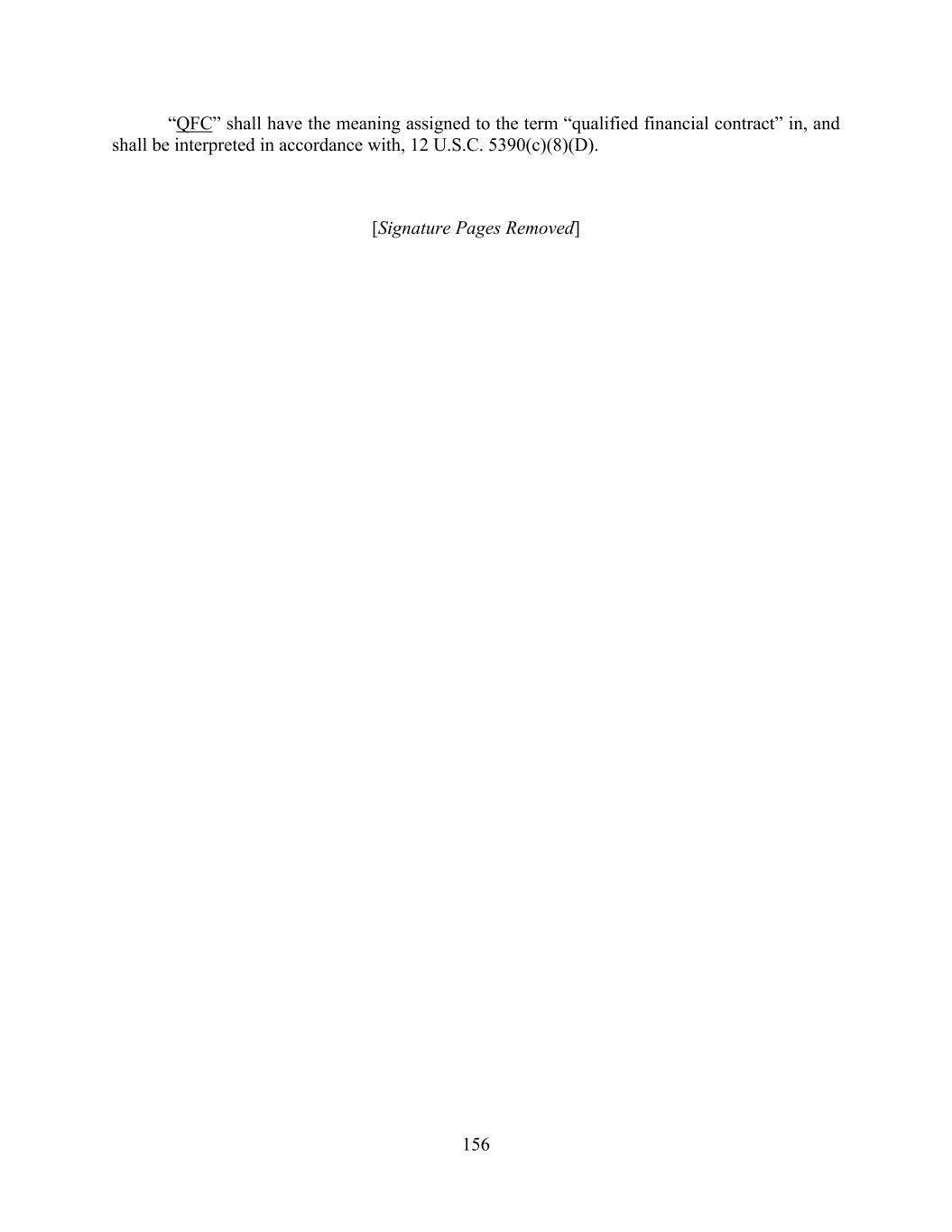 156“QFC”应具有12 U.S.C. 5390(c)(8)(d)中赋予“合格金融合同”一词的含义,并应按照该术语进行解释。[签名页已删除]