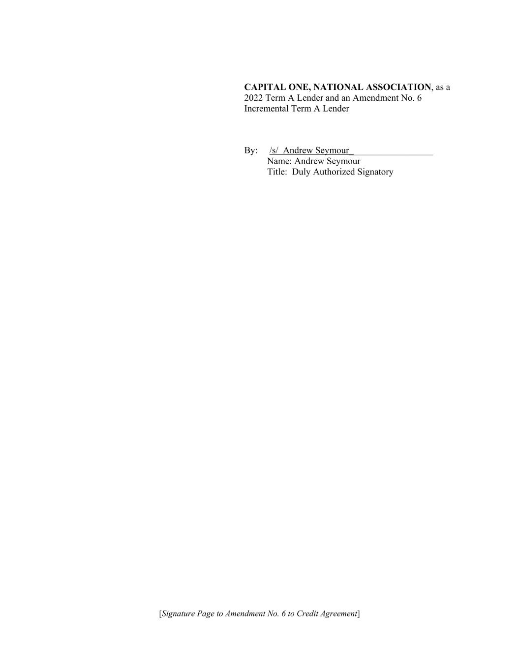 【信贷协议第6号修正案签署页】CAPITAL ONE,NATIONAL ASSOCIATION,作为2022年期限贷款人和第6号修正案增量期限贷款人:/s/Andrew Seymour __________________ Name:Andrew Seymour title:due authorized signatory