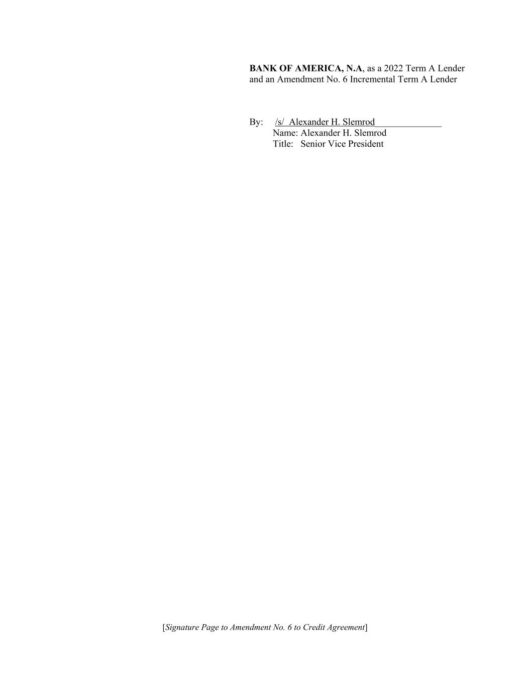 【信贷协议第6号修正案签署页】美国国家银行作为2022年期限贷款人和第6号修正案增量期限贷款人:/s/Alexander H. Slemrod ____________姓名:Alexander H. Slemrod职务:高级副总裁