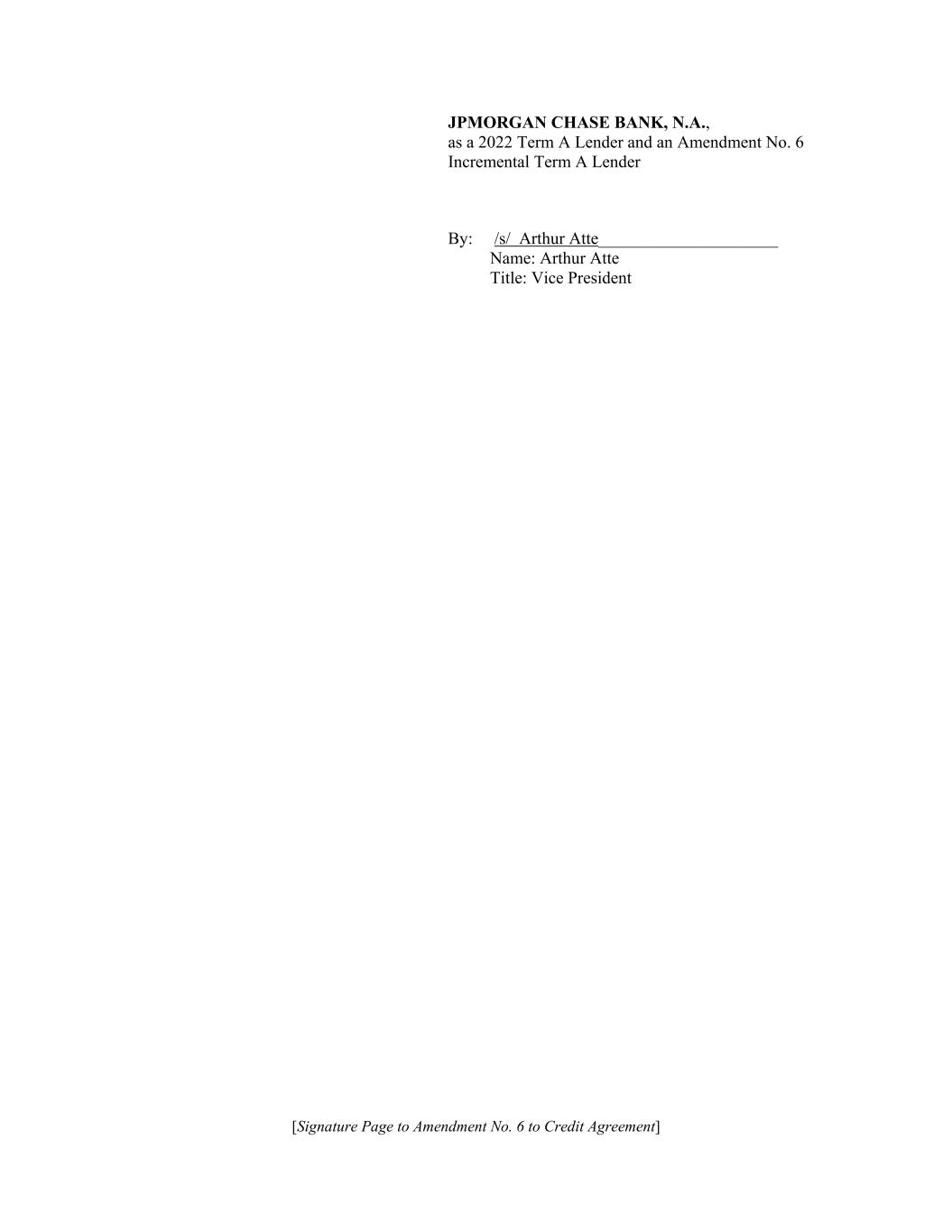 【信贷协议第6号修正案签署页】JPMorgan CHASE BANK,N.A.作为2022年期限的贷款人和第6号修正案增量期限的贷款人:/s/Arthur Atte ______________________姓名:Arthur Atte职务:副总裁