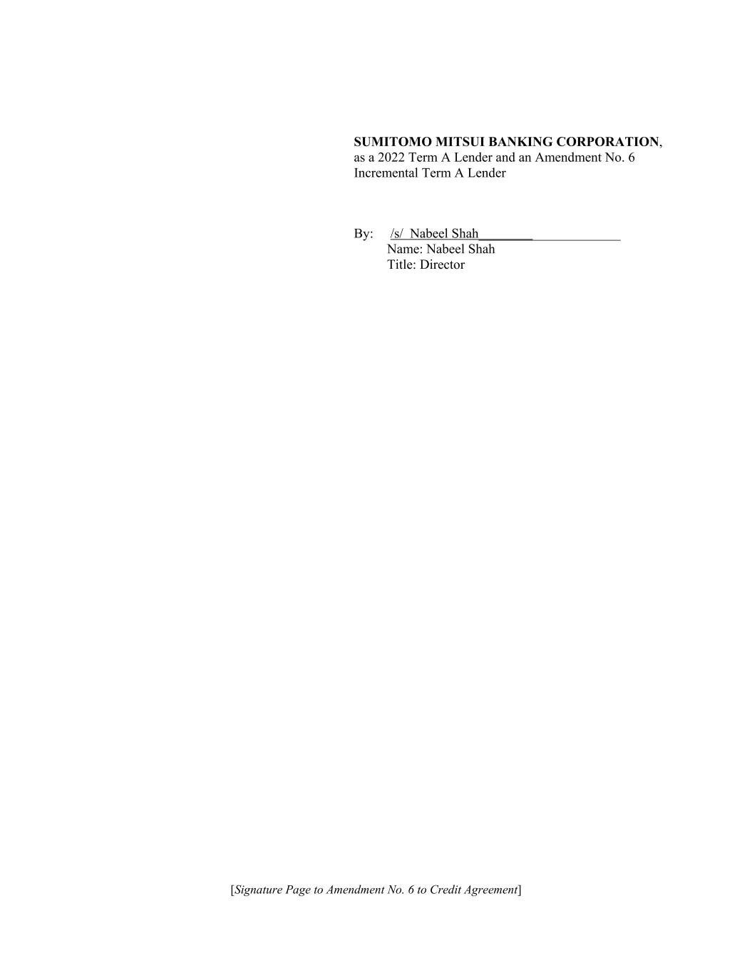 【信贷协议第6号修正案签署页】三井住友银行作为2022年期限贷款人和第6号修正案增量期限贷款人:/s/nabeel shah __________________姓名:nabeel shah职务:董事