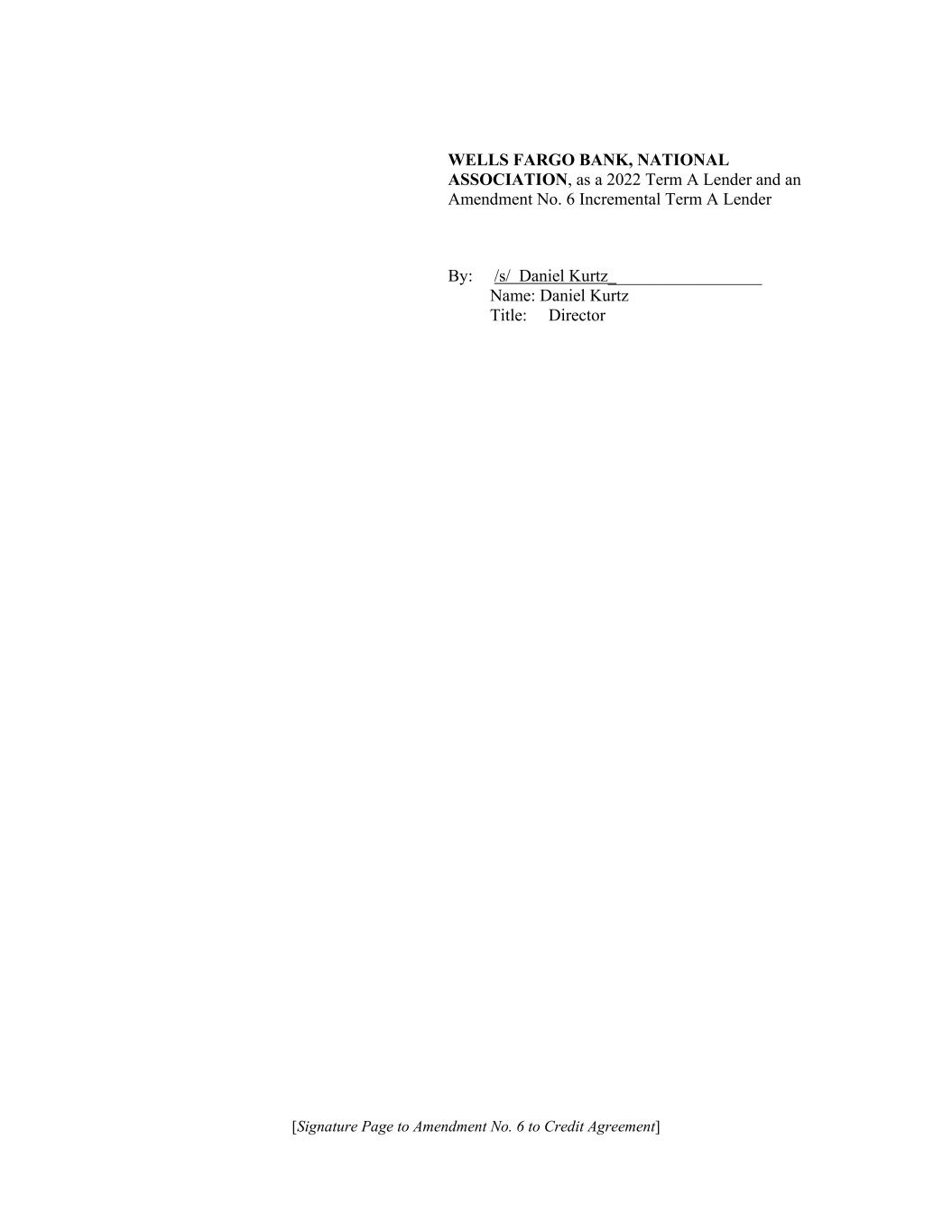 [信贷协议第6号修正案签署页] Wells Fargo Bank,National Association,作为2022年期限的贷款人和第6号修正案增量期限的贷款人:/s/Daniel Kurtz __________________姓名:Daniel Kurtz职务:董事