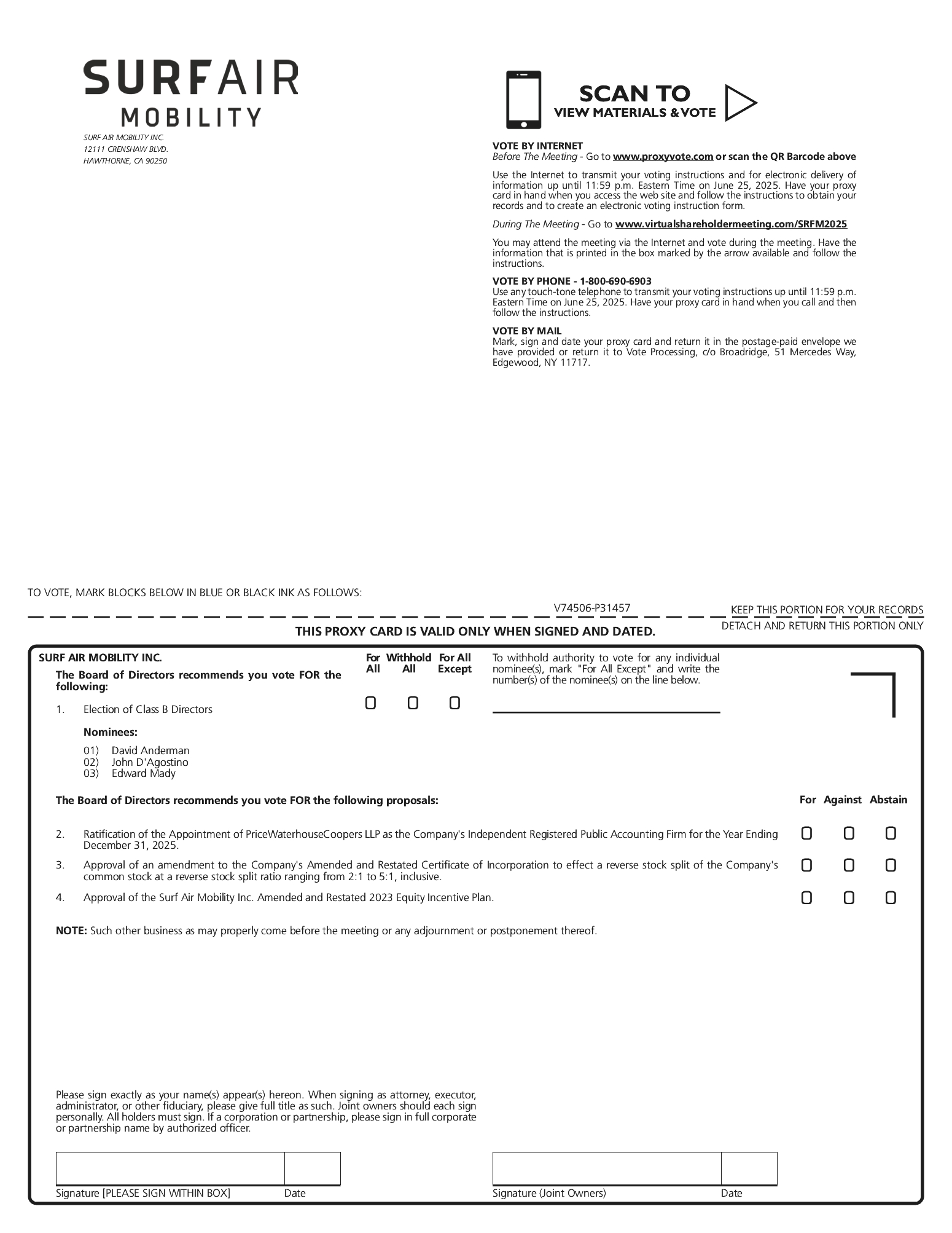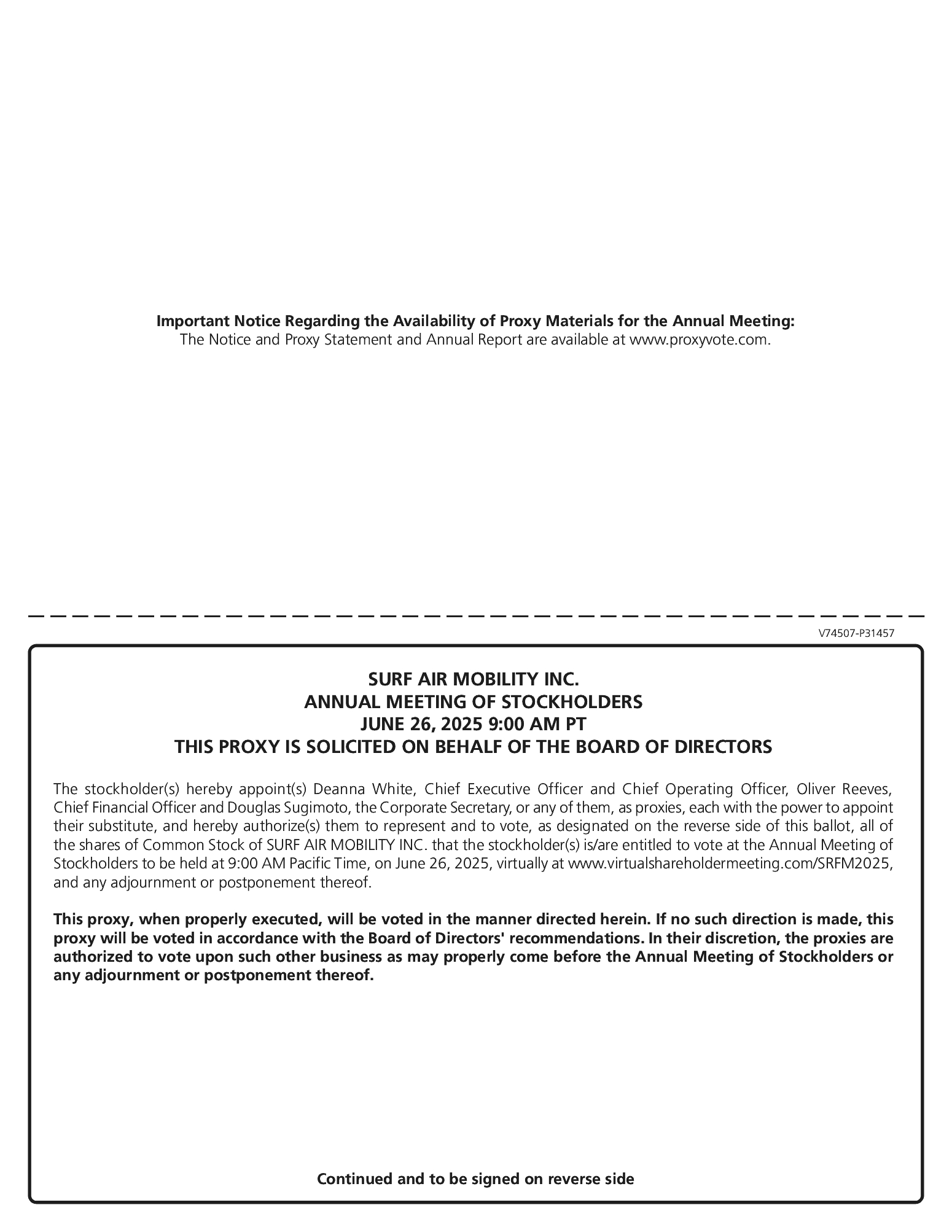 “for”批准Surf Air Mobility Inc.修订并重述2023年股权激励计划。