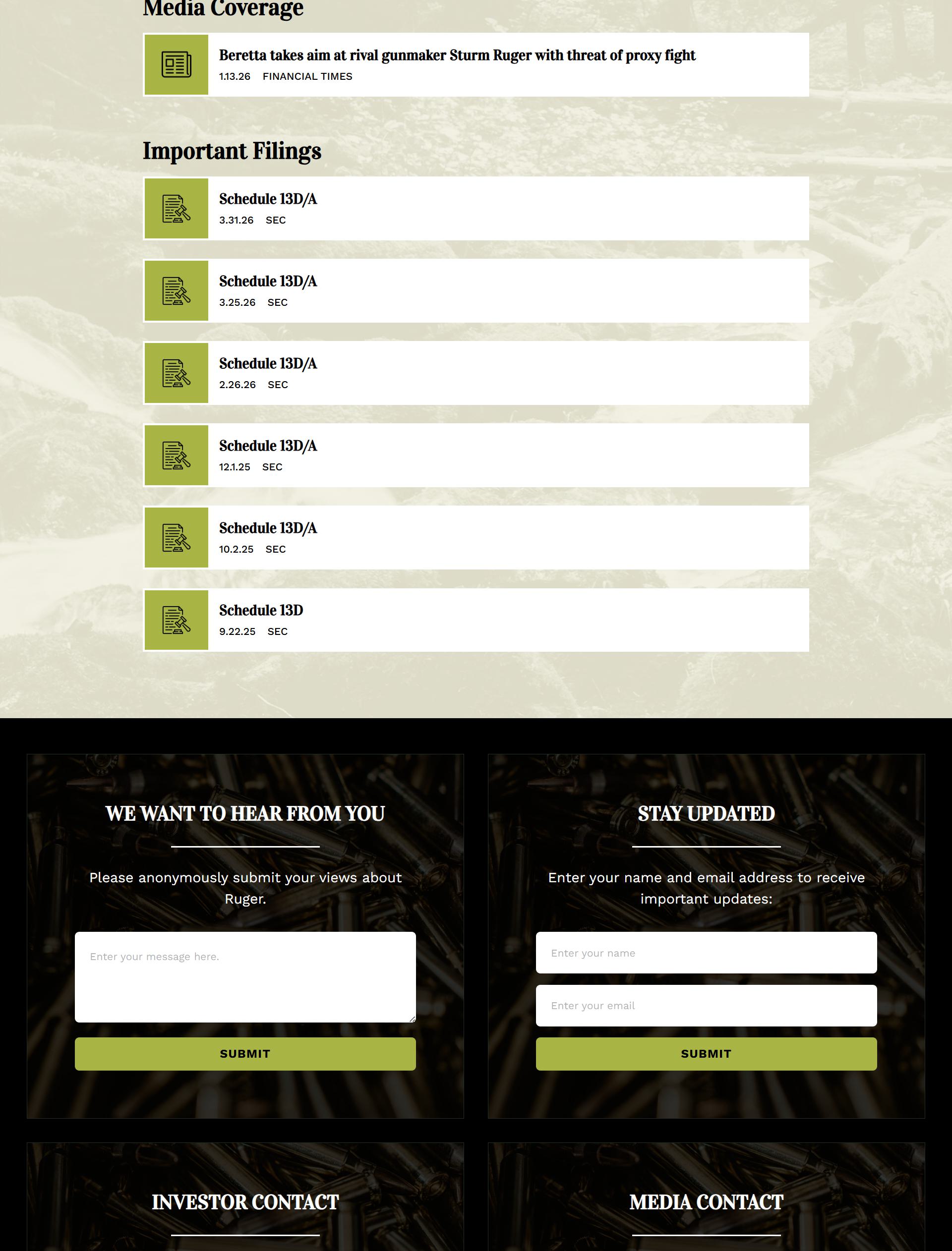 董事会对我们的客户提出的每股44.80美元的报价持否定态度,认为这只是一个“适度的溢价”。然而,自2024年7月以来,该公司的股价就再也没有达到这个水平,差不多已经过去20个多月了。如果没有贝雷塔控股在2025年9月宣布的公开投资行为,该公司的股价今天肯定会低得多,这样一来,我们客户提出的44.80美元的报价就显得更加有吸引力了。市场对贝雷塔控股的报价表现出积极反应,这本应让董事会明白股东们的真实意愿。然而,董事会却公然阻碍他们自己决定对Ruger的投资方向以及Ruger的未来发展的机会。