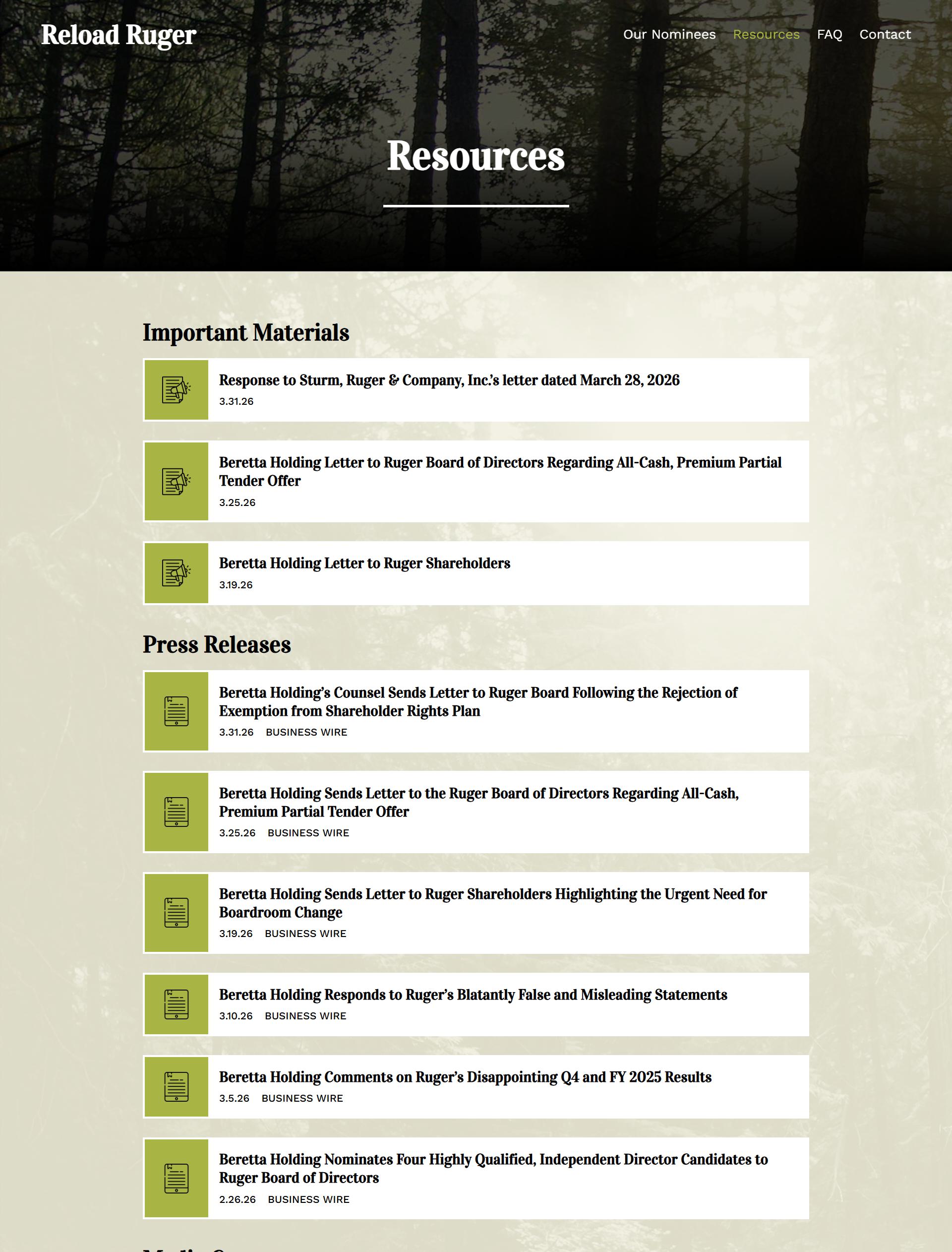 项目3:贝雷塔控股公司在www.ReloadRuger.com上发布了以下材料: