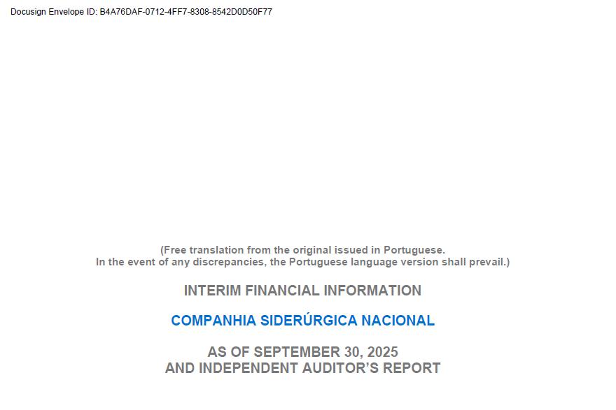 Companhia Sider ú rgica Nacional谨此通知,于2025年11月4日,其子公司CSN Minera çã o S.A.召开了董事会会议,目的是批准分配903,205,733.68雷亚尔(九百三十万二十五千七百三十三雷亚尔和六十八分),其中:(a)424,205,733.68雷亚尔(四亿二千四百万二十五千七百三十三雷亚尔和六十八分)是分配到2025年9月30日编制的资产负债表中计算的利润账户的中期股息,对应每股0.07 80931987417雷亚尔和;(b)479,000,000.00雷亚尔(40.79亿雷亚尔)为CSN Minera çã o支付的股权利息,其中(b1)448,142,315.36雷亚尔(40.48亿一亿四千二百三十五雷亚尔和三十六分)分配到子公司以前会计年度的留存收益账户,(b2)30,857,684.64雷亚尔(三亿八百五十七千六百八十四雷亚尔和六十四分)分配到子公司于9月30日编制的资产负债表中计算的利润账户,2025年,对应每股总金额0.0881804257401雷亚尔。CSN Minera çã o在存托机构Banco Bradesco S.A.登记的股东有权在2025年11月7日获得这些股息和股权利息,截至2025年11月10日,这些股份将在股息剥离的情况下进行交易。中期股息及权益利息的支付将于2025年11月19日在特定日期提供,该日期须于适当时候告知股东及市场,而不适用于申报日期至有效支付日期之间的货币重述或利息。