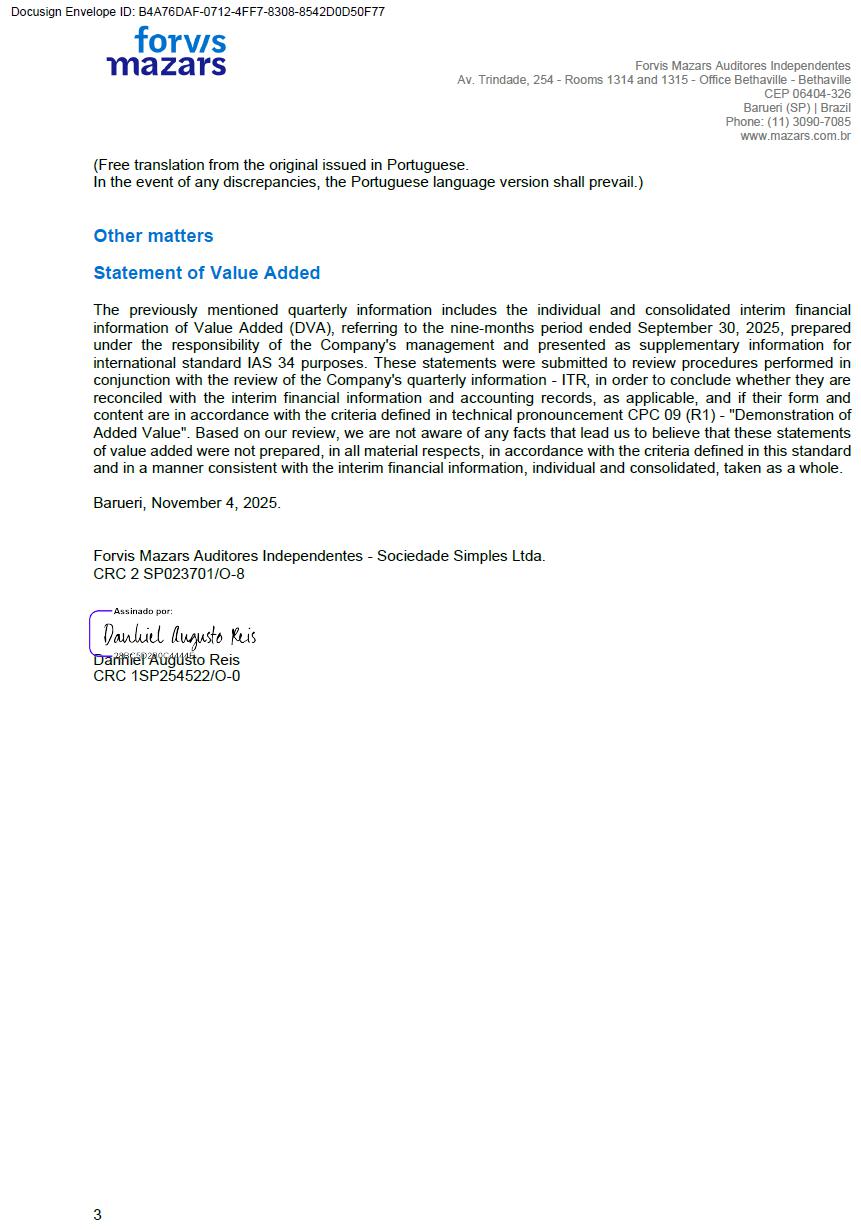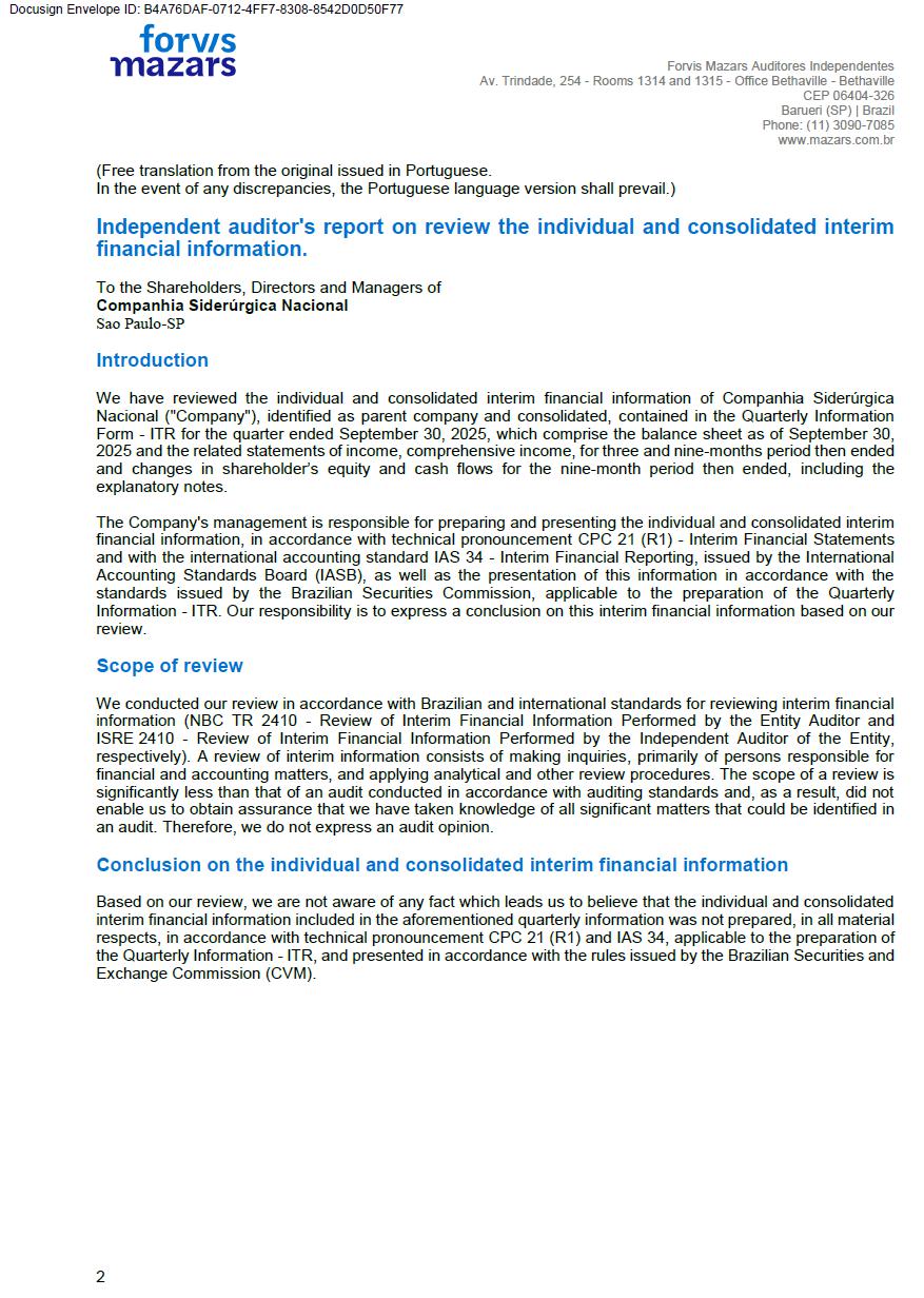 2025年10月23日,公司就巴西反垄断委员会(Cade)的声明在市场上提供了通知,该声明称,经修订的2014年业绩承诺协议中规定的剥离Usinas Sider ú rgica de Minas Gerais – Usiminas发行的股份的义务(“剥离”和“TCD”)已履行。此外,通过第6地区联邦地区法院(TRF-6)单一法官的裁决,针对该裁决的上诉仍在等待中,CADE以多数票对CSN处以1.281亿美元的行政罚款。这一情况与CADEE总警司办公室技术部门得出的结论以及包括其总裁在内的这家政府控制机构的2(2)名董事的投票结果背道而驰,即CSN不存在会导致适用处罚的TCD违约。