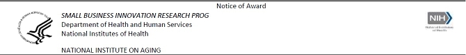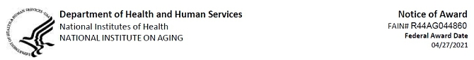 该奖项被授予联邦奖项识别号(FAIN)R44AG044860。受赠方必须在根据本裁决颁发的每个财团/子裁决上记录指定的FAIN。