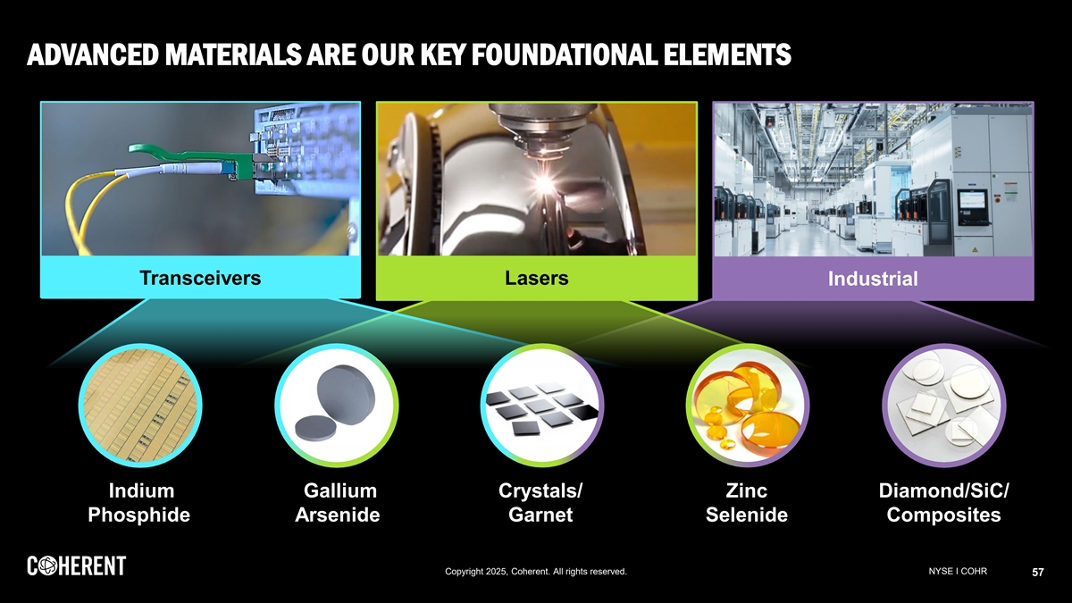 先进材料是我们的关键基础元素收发器激光器工业铟镓晶体/锌金刚石/SiC/磷化砷石石榴石硒化物复合材料版权所有2025,连贯一致。版权所有。NYSE I COHR 57