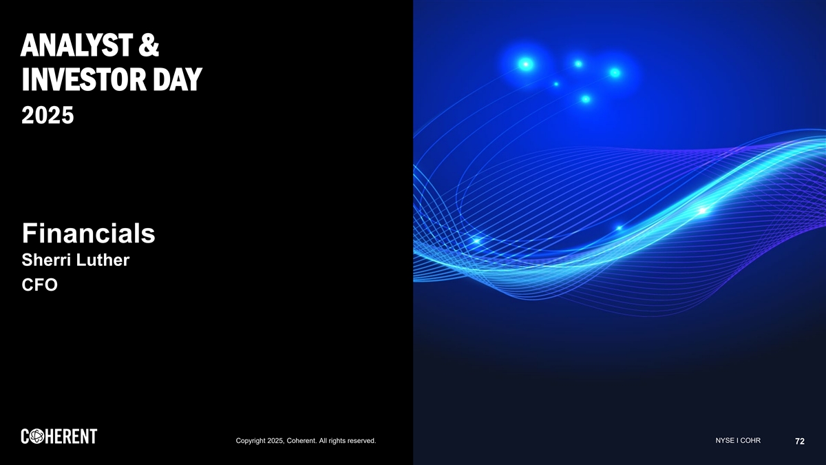 Analyst & Investor DAY 2025 Financial Sherri Luther CFO版权所有2025,Coherent。版权所有。NY NYS SE E I I CO COHR HR 72