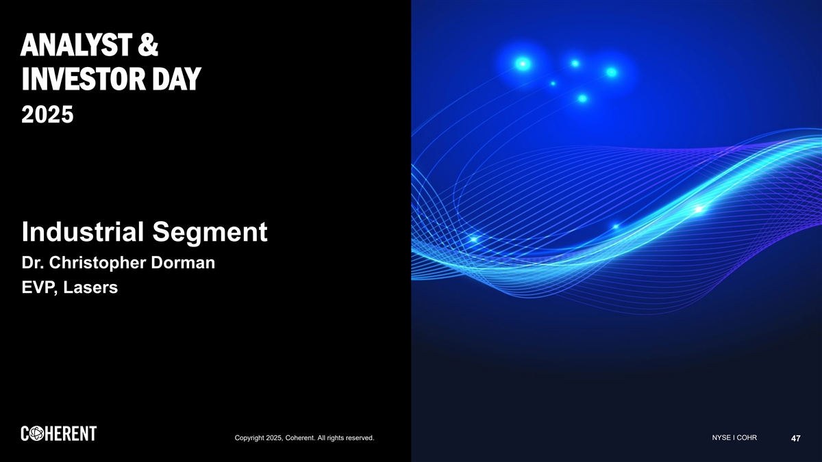 Analyst & Investor DAY 2025工业部门Dr. Christopher Dorman执行副总裁,激光器版权所有2025,Coherent。版权所有。NY NYS SE E I I CO COHR HR 47