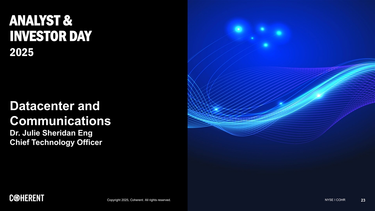 Analyst & Investor DAY 2025 Datacenter and Communications Dr. Julie Sheridan Eng首席技术官版权所有2025,Coherent。版权所有。NY NYS SE E I I CO COHR HR 23