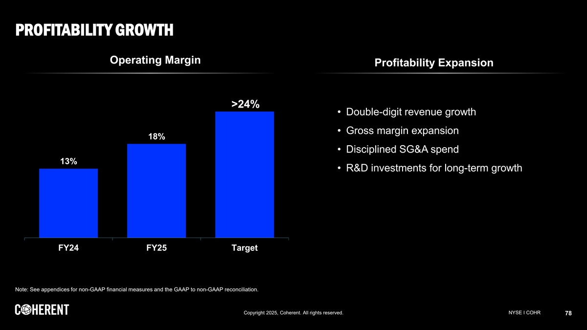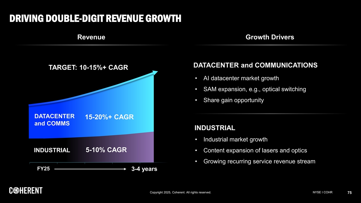 增长的复杂性和比市场更快的内容无与伦比的产品深科技长寿命,高增长组合堆栈保证金收入版权所有2025,连贯一致。版权所有。NYSE I COHR 71