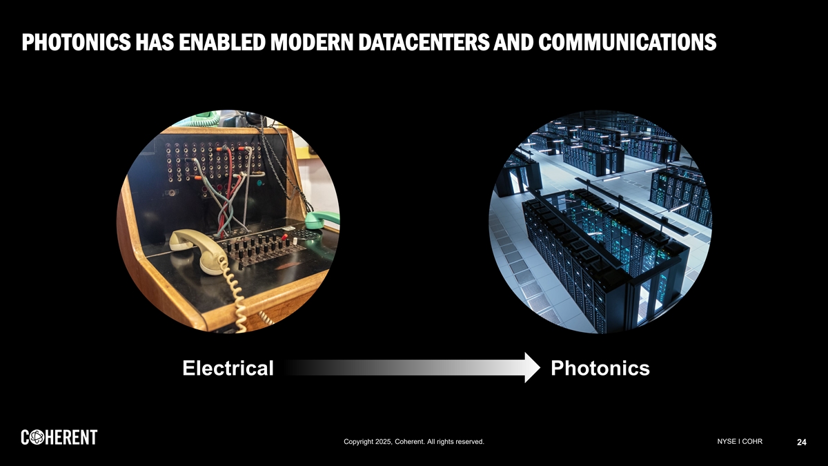 PhotoNICS已启用现代数据中心和通信电气光子学版权2025,连贯一致。版权所有。NYSE I COHR 24