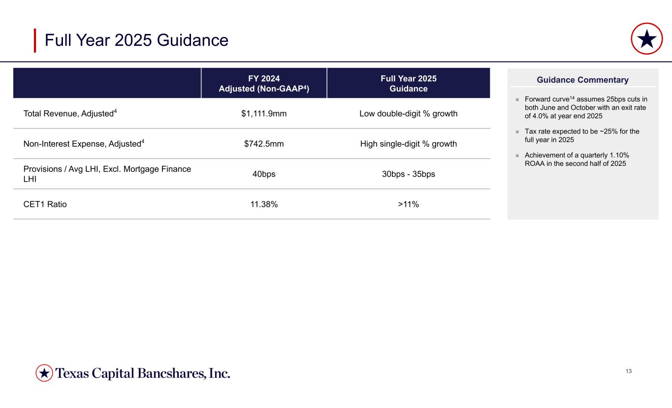©2025年德州Capital银行成员FDIC 2025年4月17日Q1-2025收益