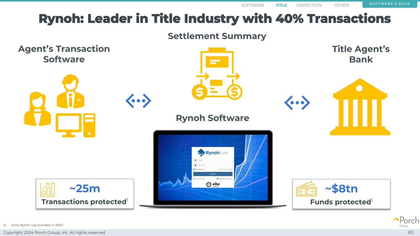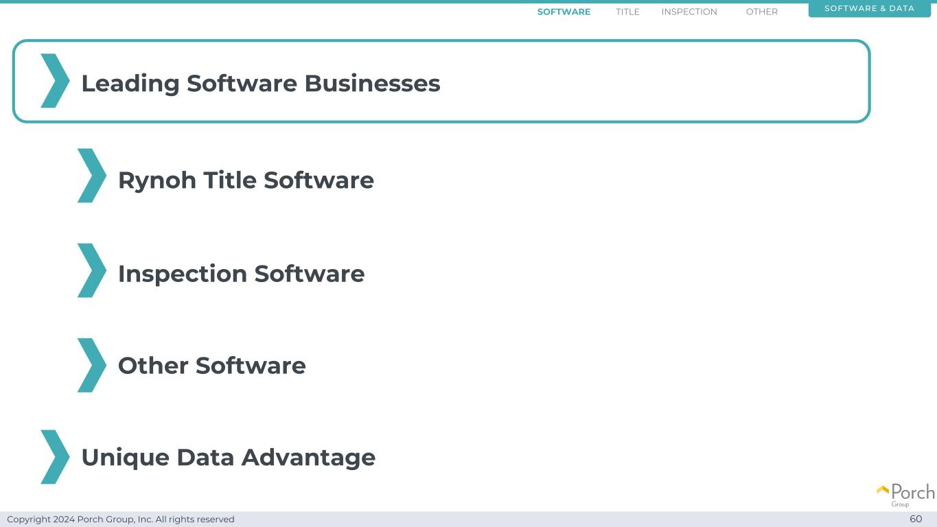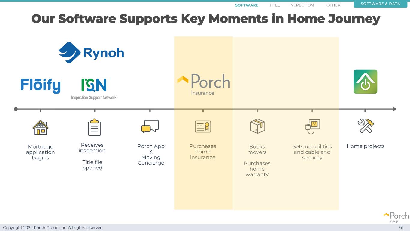 Copyright 2024 Porch Group, Inc. All rights reserved 60 Leading Software BusinessRynoh Title Software Inspection Software Other Software Unique Data Advantage Software Title Inspection Other Software & DATA
