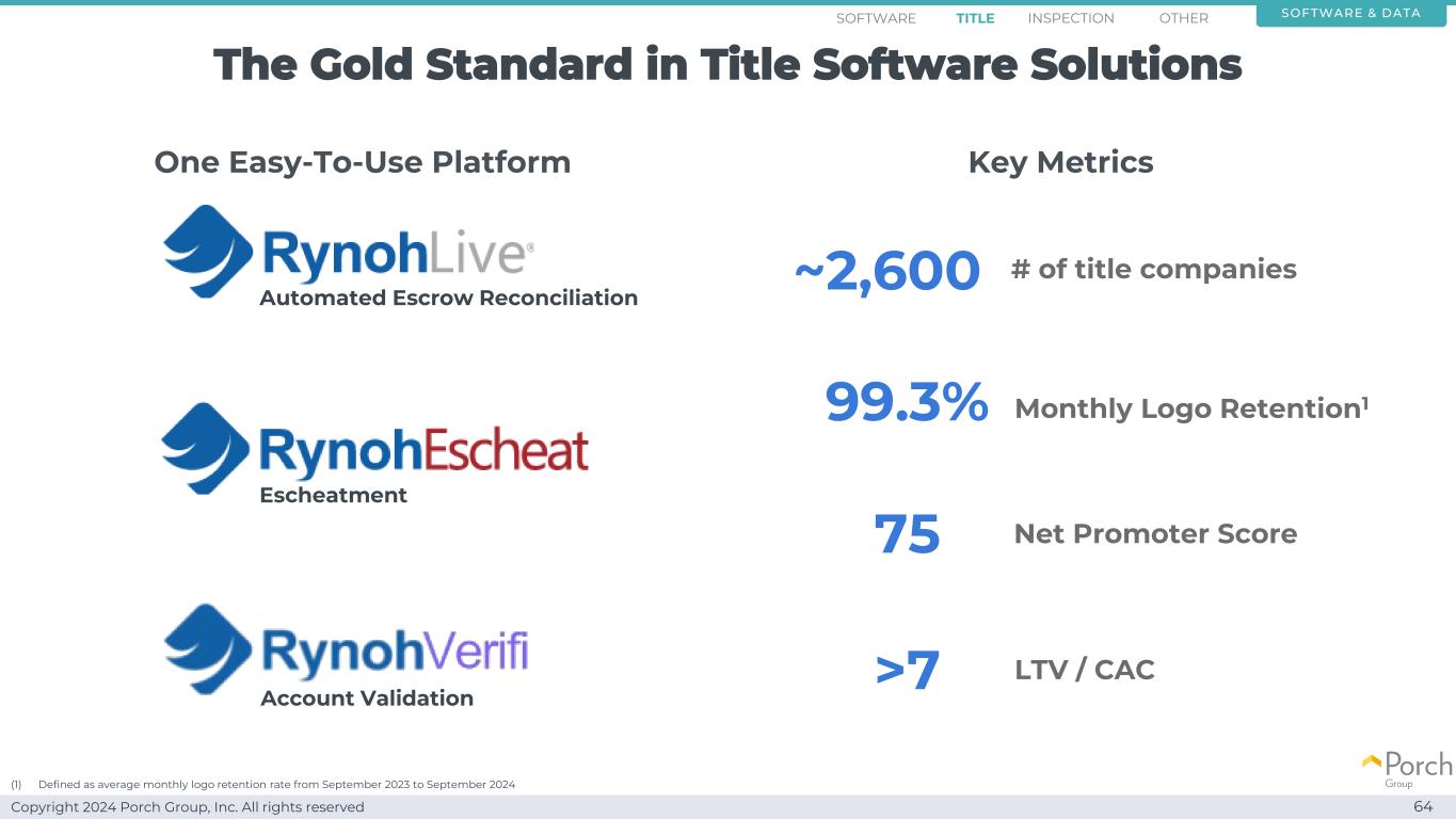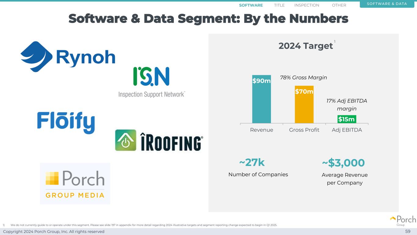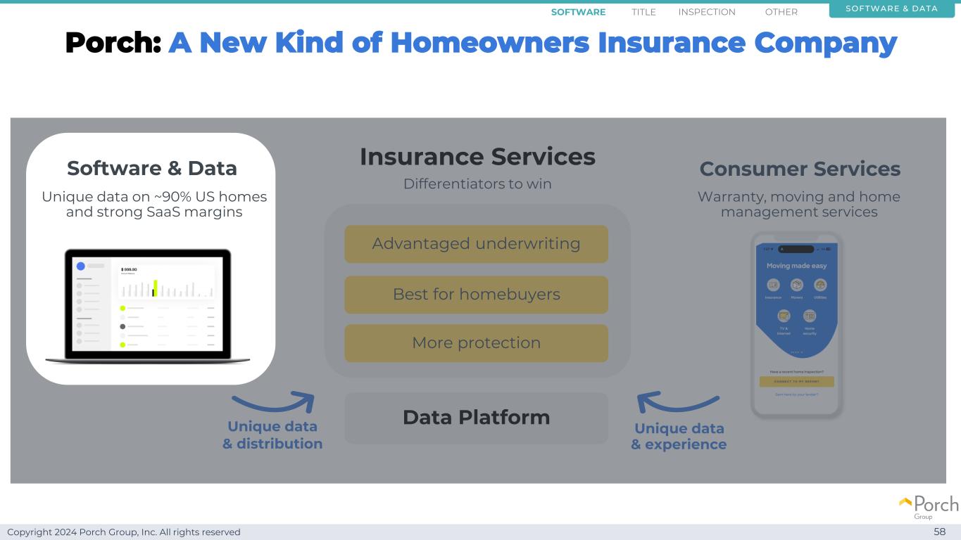 Copyright 2024 Porch Group, Inc. All rights reserved 60 Leading Software BusinessRynoh Title Software Inspection Software Other Software Unique Data Advantage Software Title Inspection Other Software & DATA