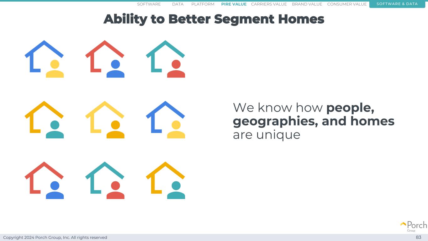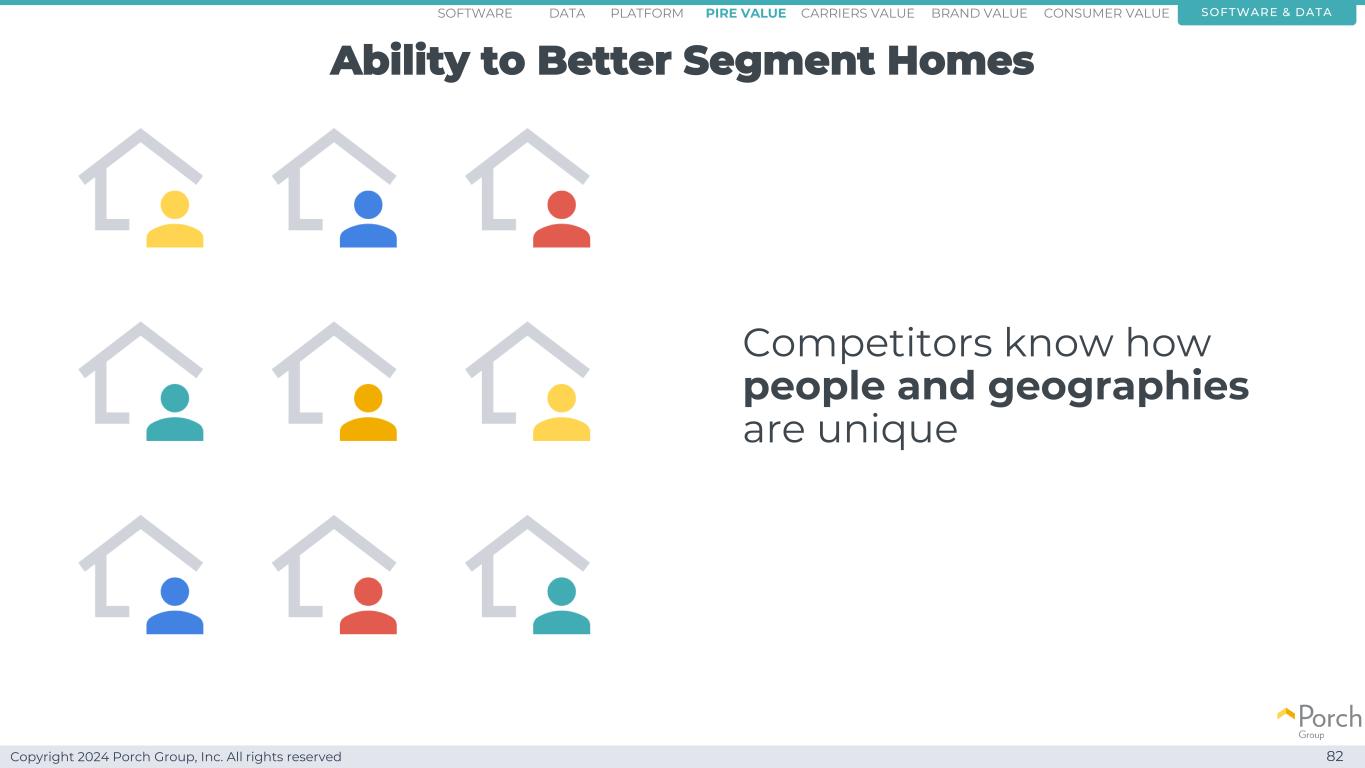 Copyright 2024 Porch Group, Inc. All rights reserved Ability to better segment homes 82 competitors know how people and geographies are unique software & data consumer valueCARRRIERS valuepire value brand valuePlatformsoftware data