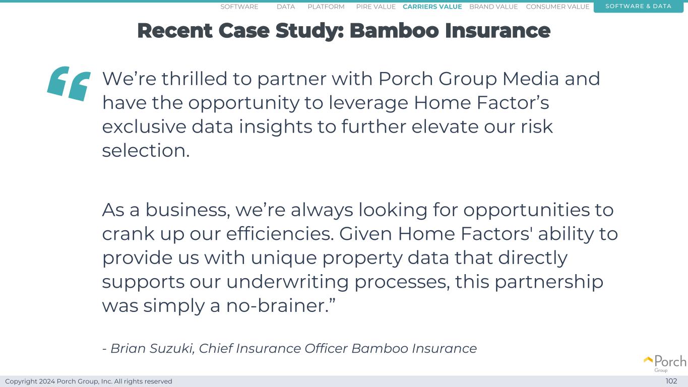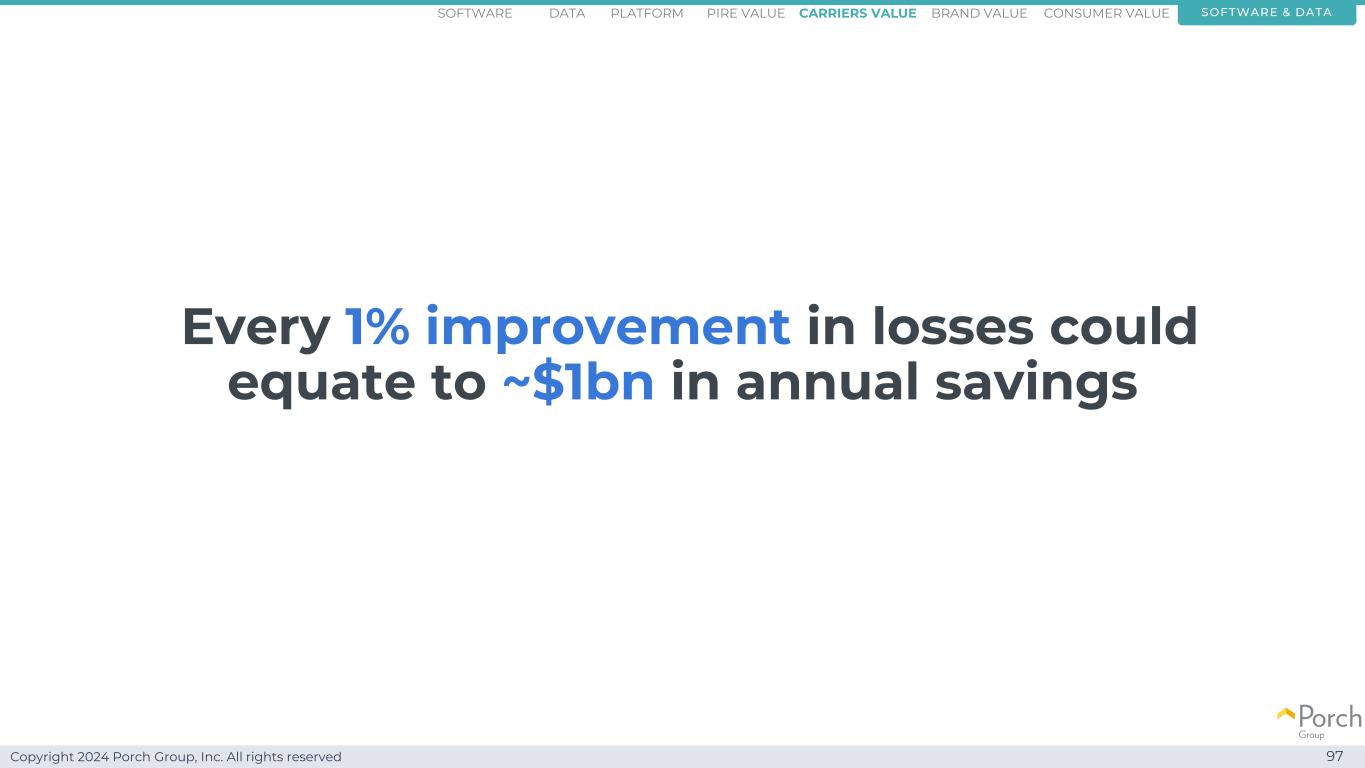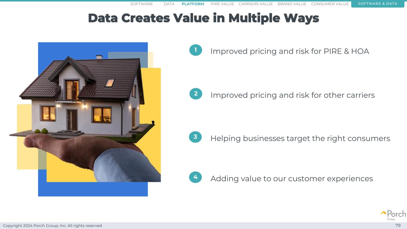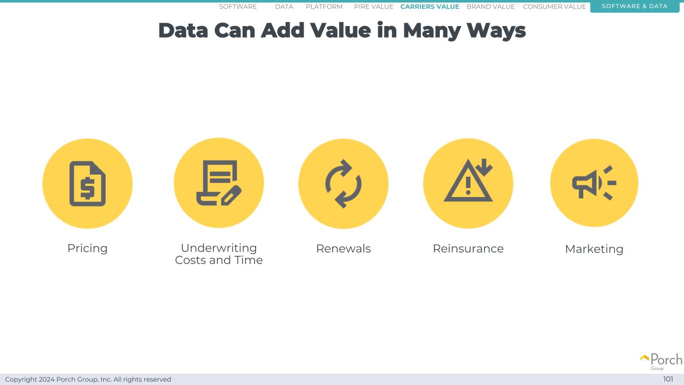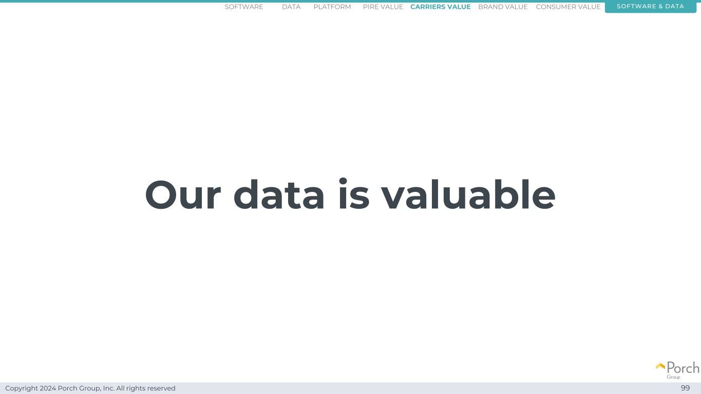 Copyright 2024 Porch Group, Inc. All rights reserved Our data is valuable 99 software & dataconsumer valueCARRRIERS value brand valuepire valuePlatformsoftware data