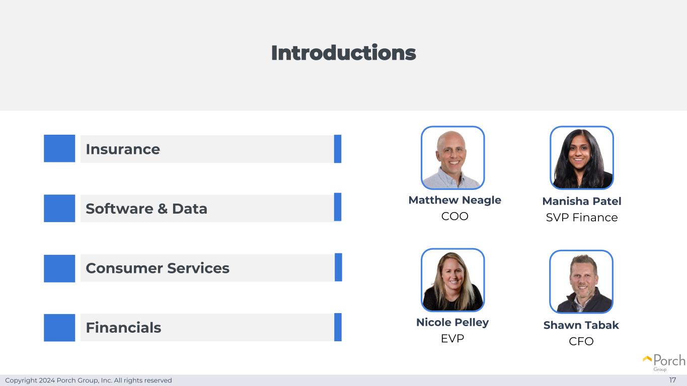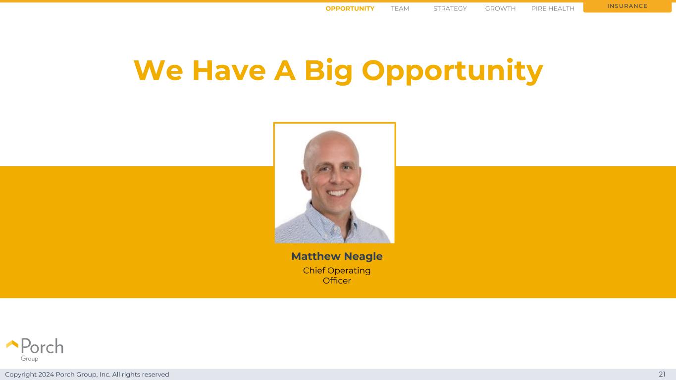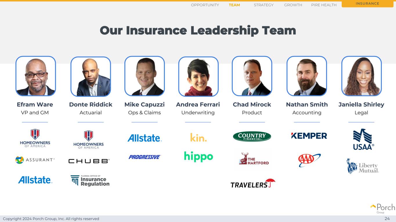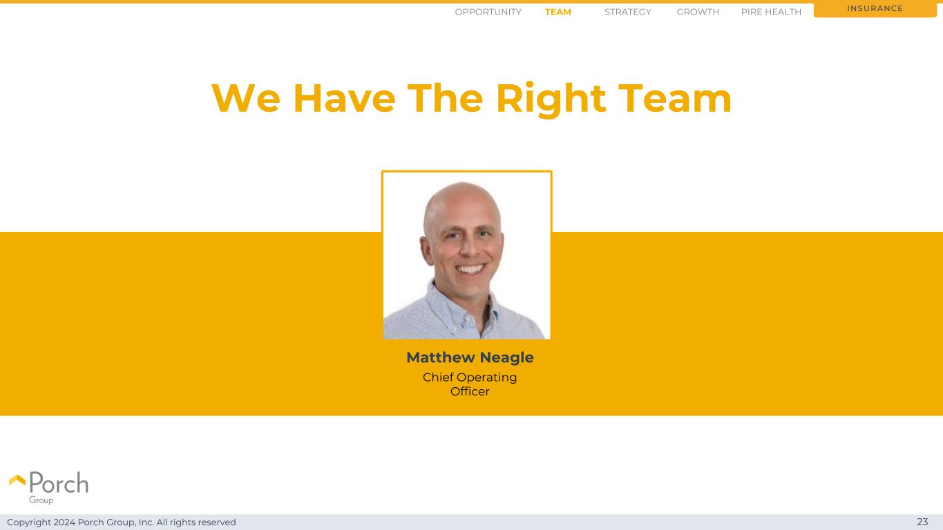 Copyright 2024 Porch Group, Inc. All rights reserved 23我们有合适的团队insurance opportunity strategy growthteam PIRE health Matthew Neagle首席运营官