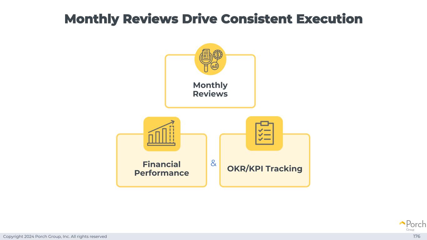 Copyright 2024 Porch Group, Inc. All rights reserved monthly reviews drive consistent execution 176 Financial performance OKR/KPI tracking & monthly reviews