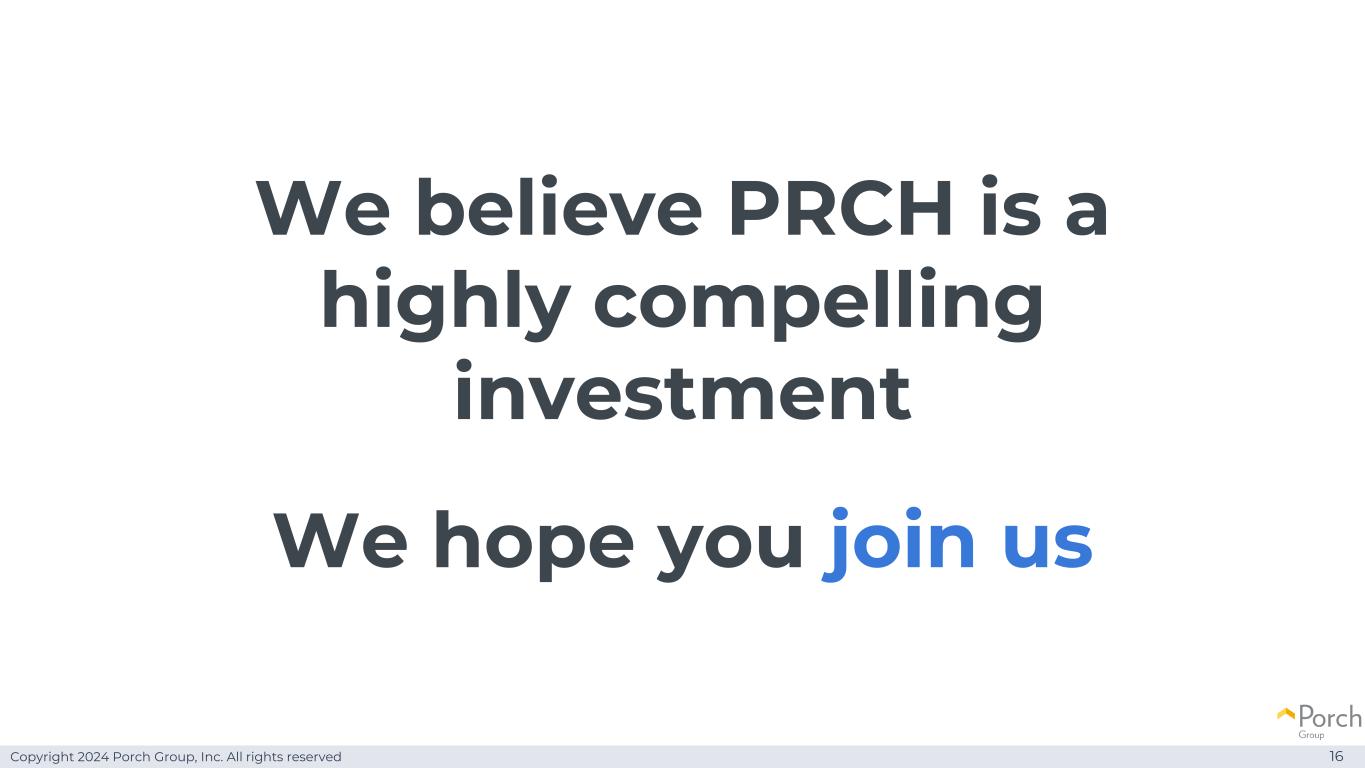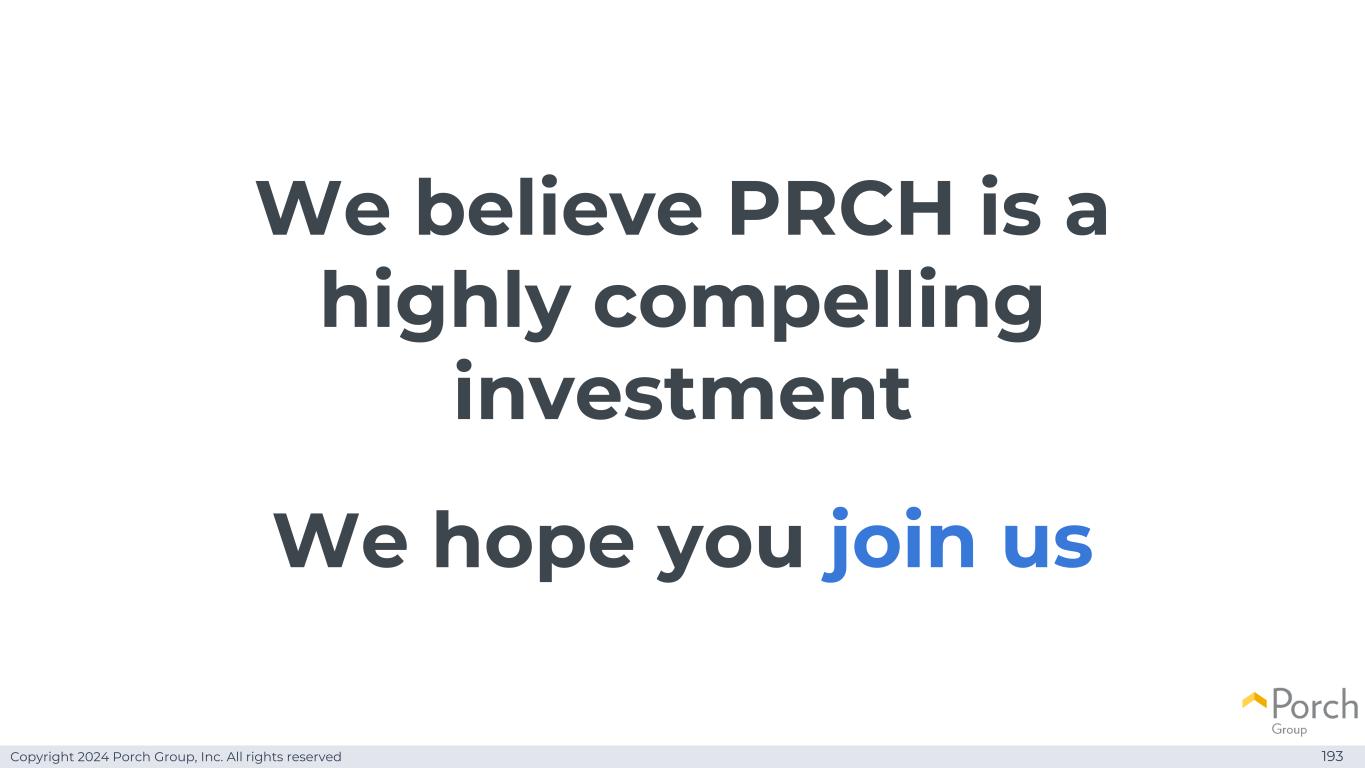 Copyright 2024 Porch Group, Inc. All rights reserved We believe PRCH is a highly competitive investment 193 We hope you join us
