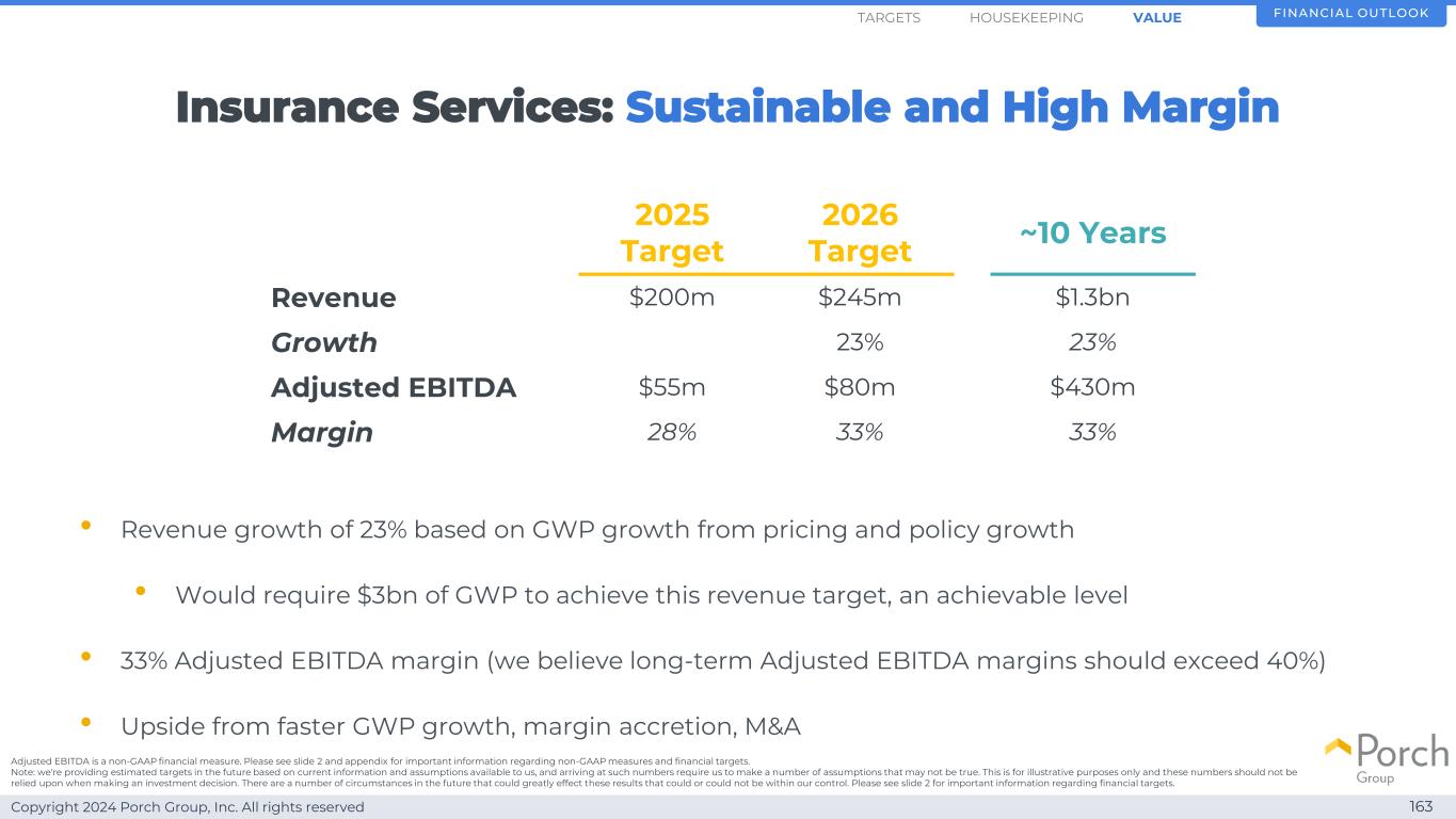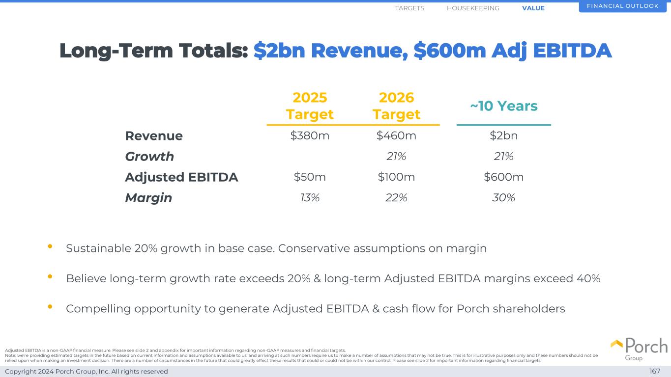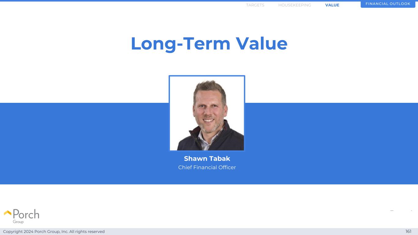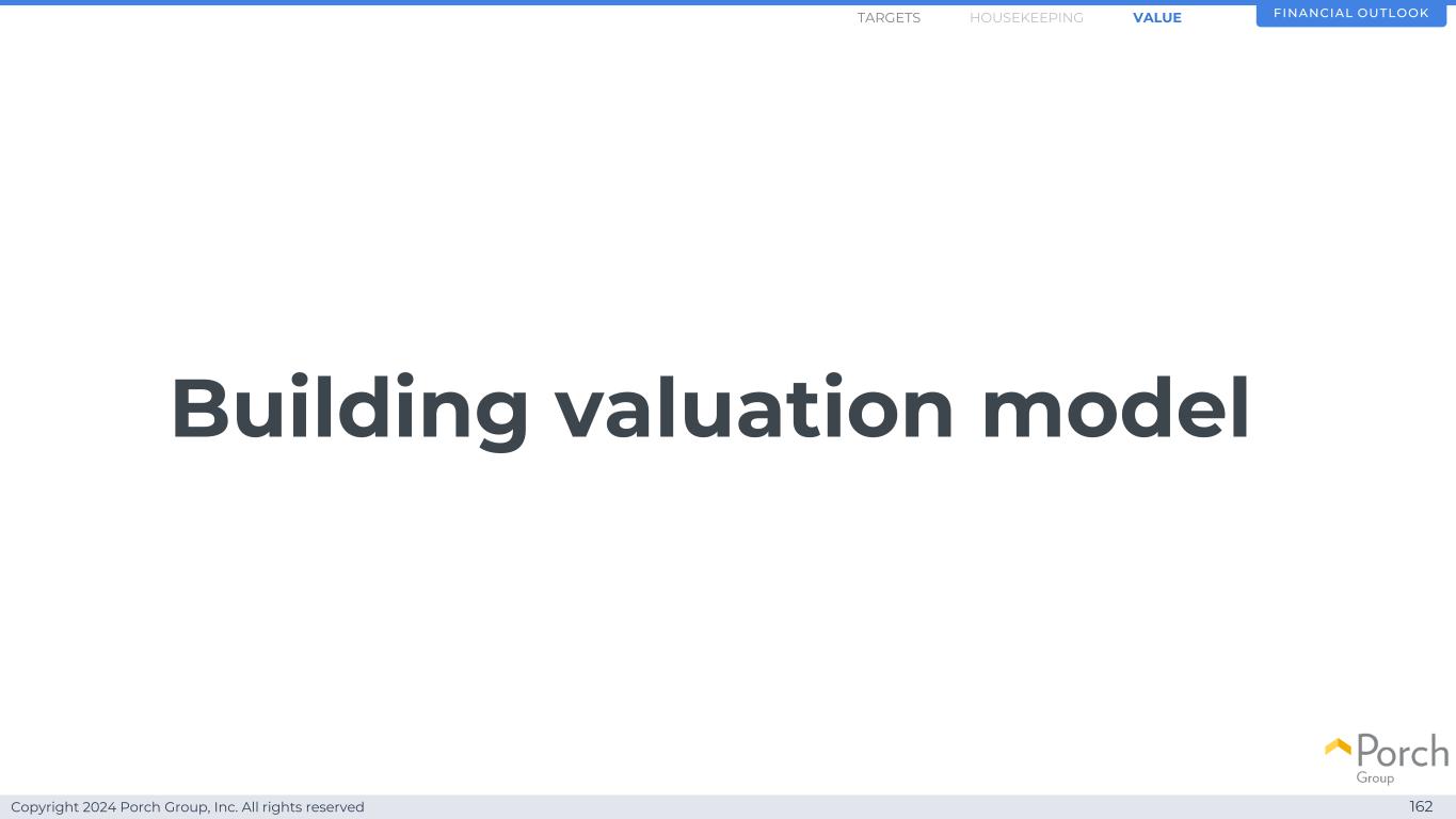 Copyright 2024 Porch Group, Inc. All rights reserved 162 Building valuation model FINANCIAL OUTLOOKHOUSEKEEPINGARGETS VALUE
