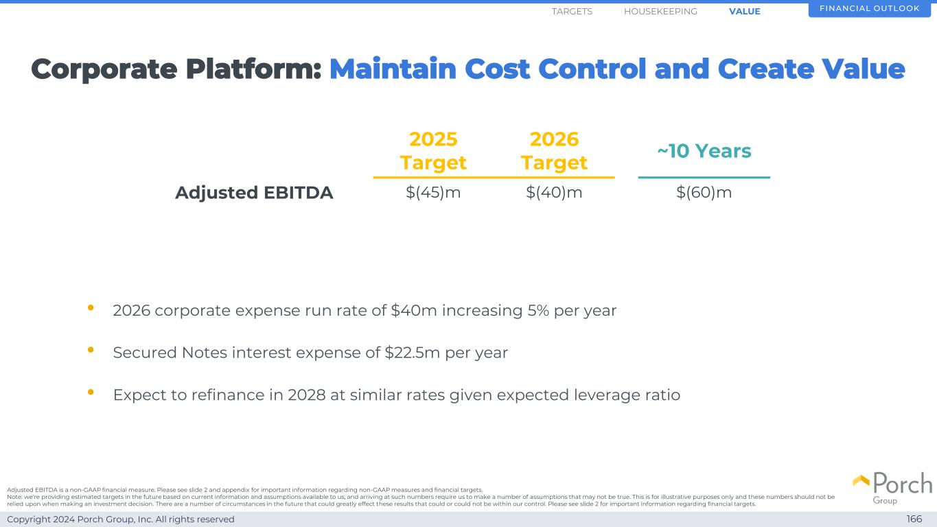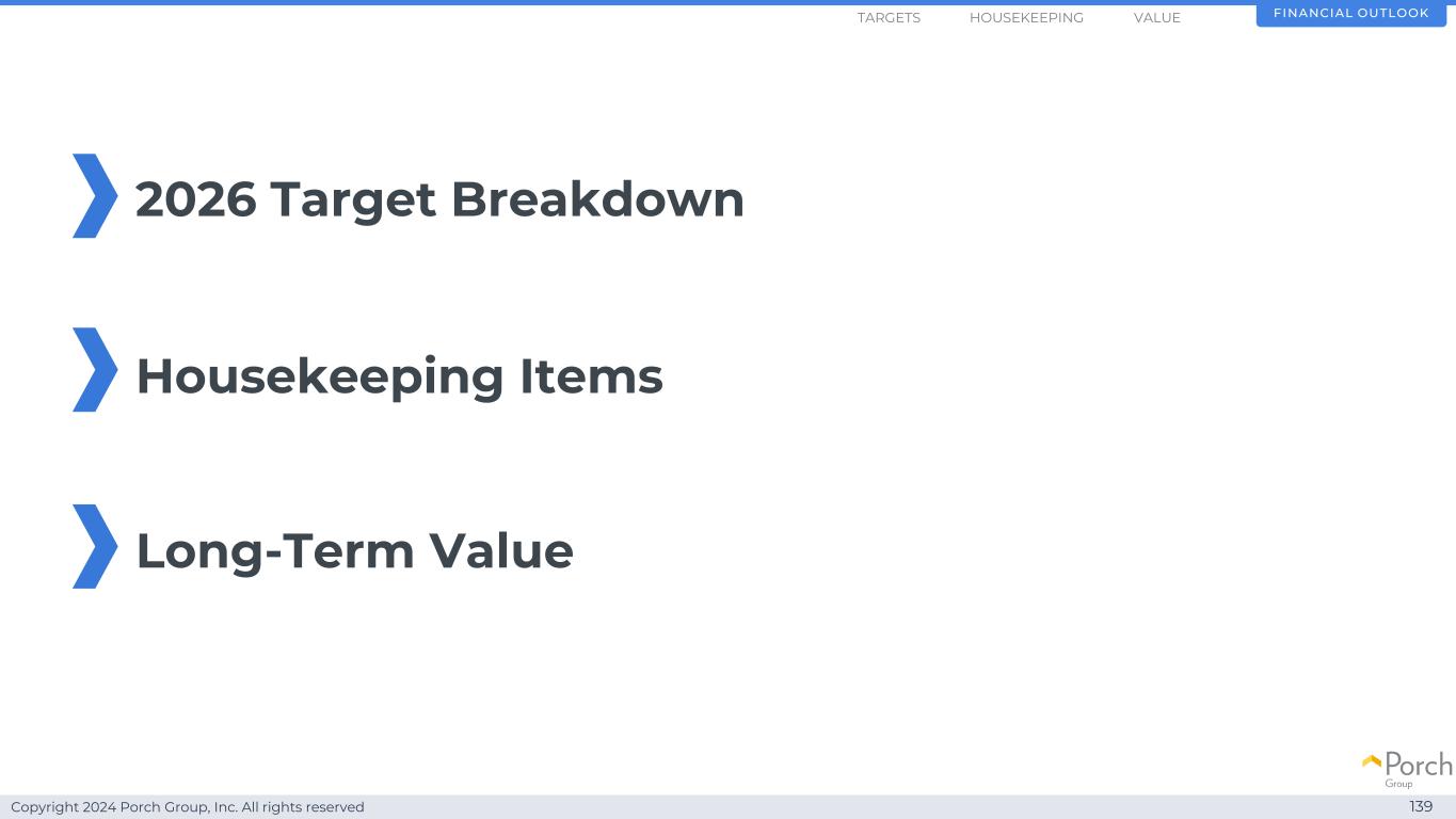 Copyright 2024 Porch Group, Inc. All rights reserved 1392026 Target Breakdown Housekeeping items Long-term value financial outlookHousekeeping valuetargets