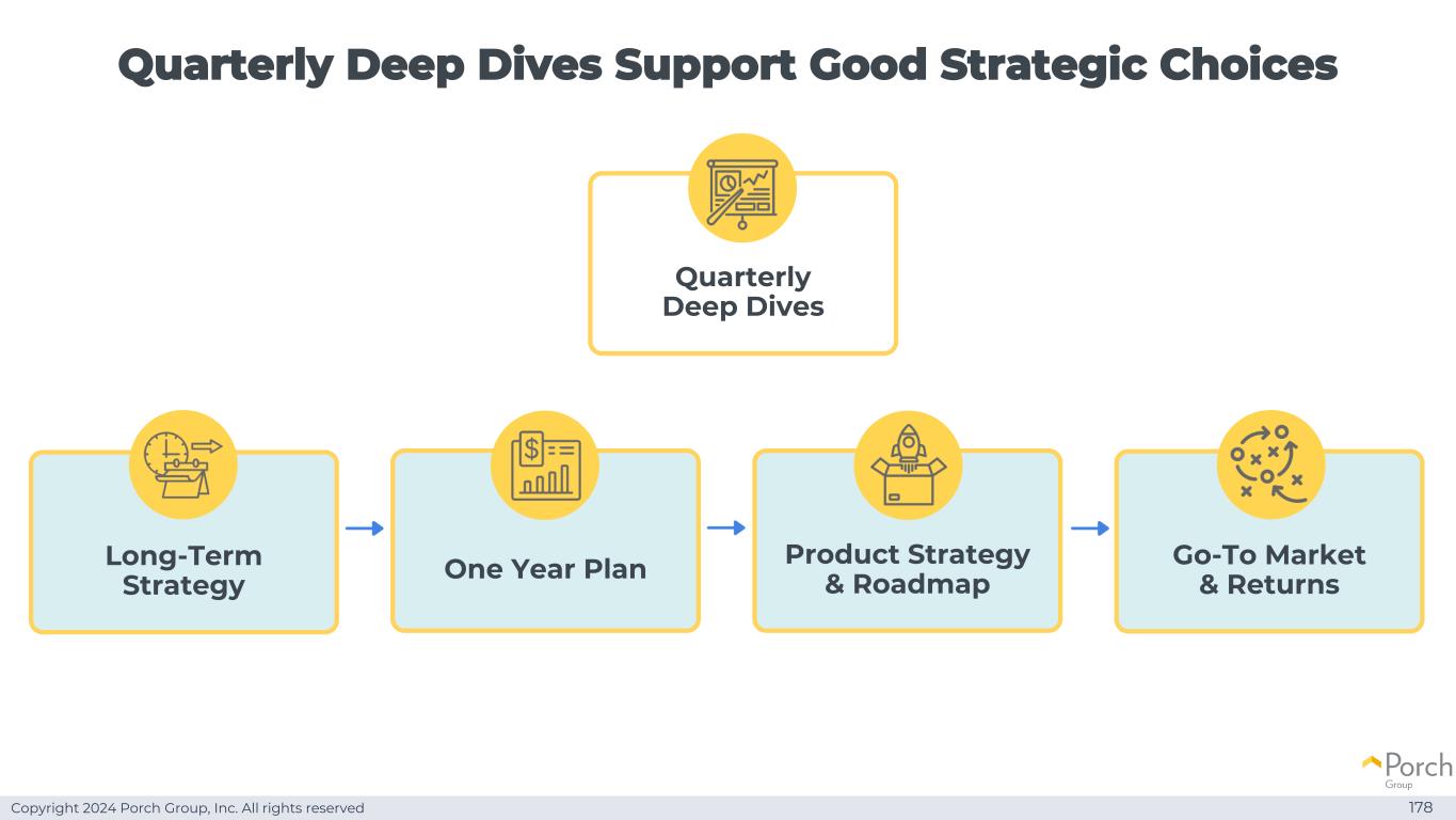 Copyright 2024 Porch Group, Inc. All rights reserved quarterly deep dives support good strategic choices 178 product strategy & roadmapone year plan go-to market & returns long-term strategy quarterly deep dives