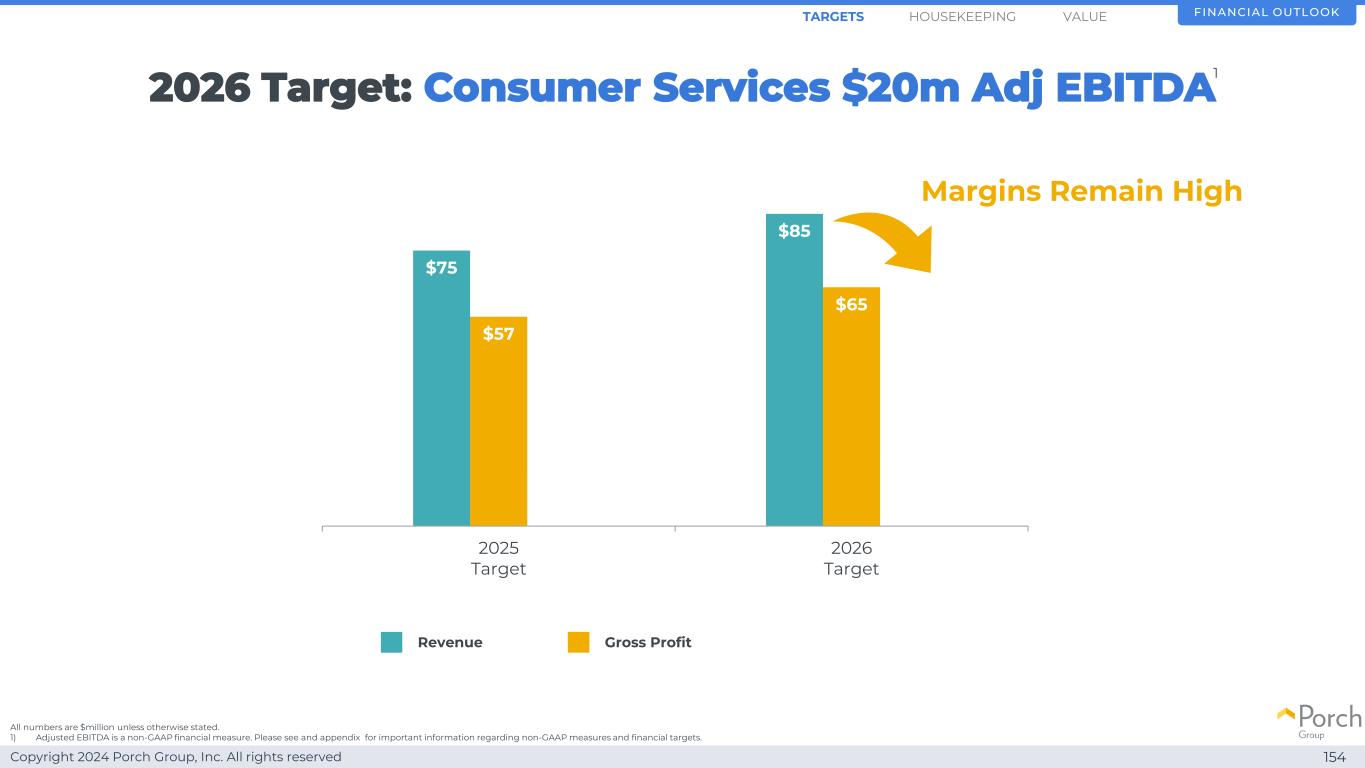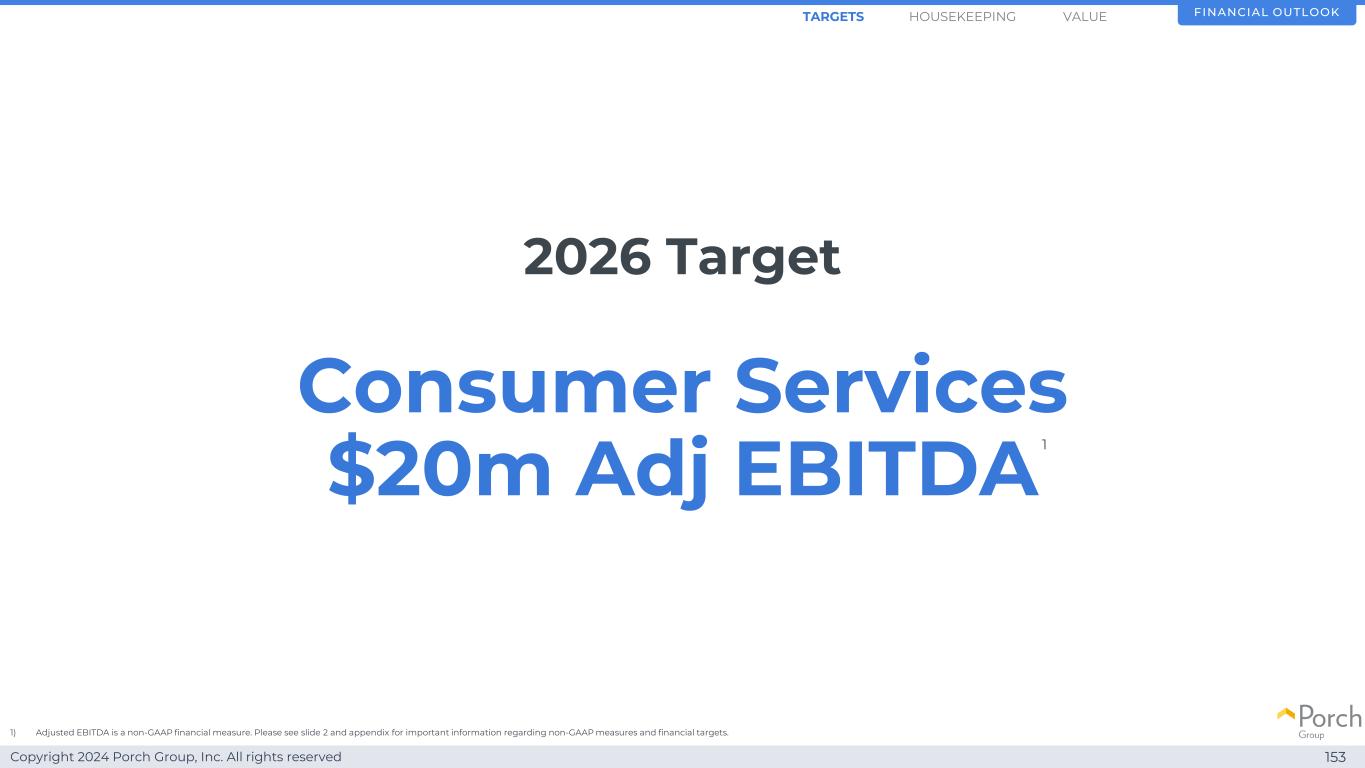 Copyright 2024 Porch Group, Inc. All rights reserved 2026 Target Consumer Services 2000万美元调整后EBITDA 153财务展望1)调整后EBITDA是一种非公认会计准则财务指标。有关非GAAP措施和财务目标的重要信息,请参见幻灯片2和附录。值1