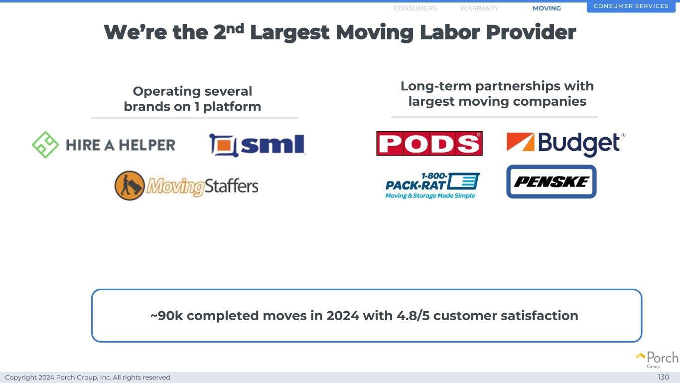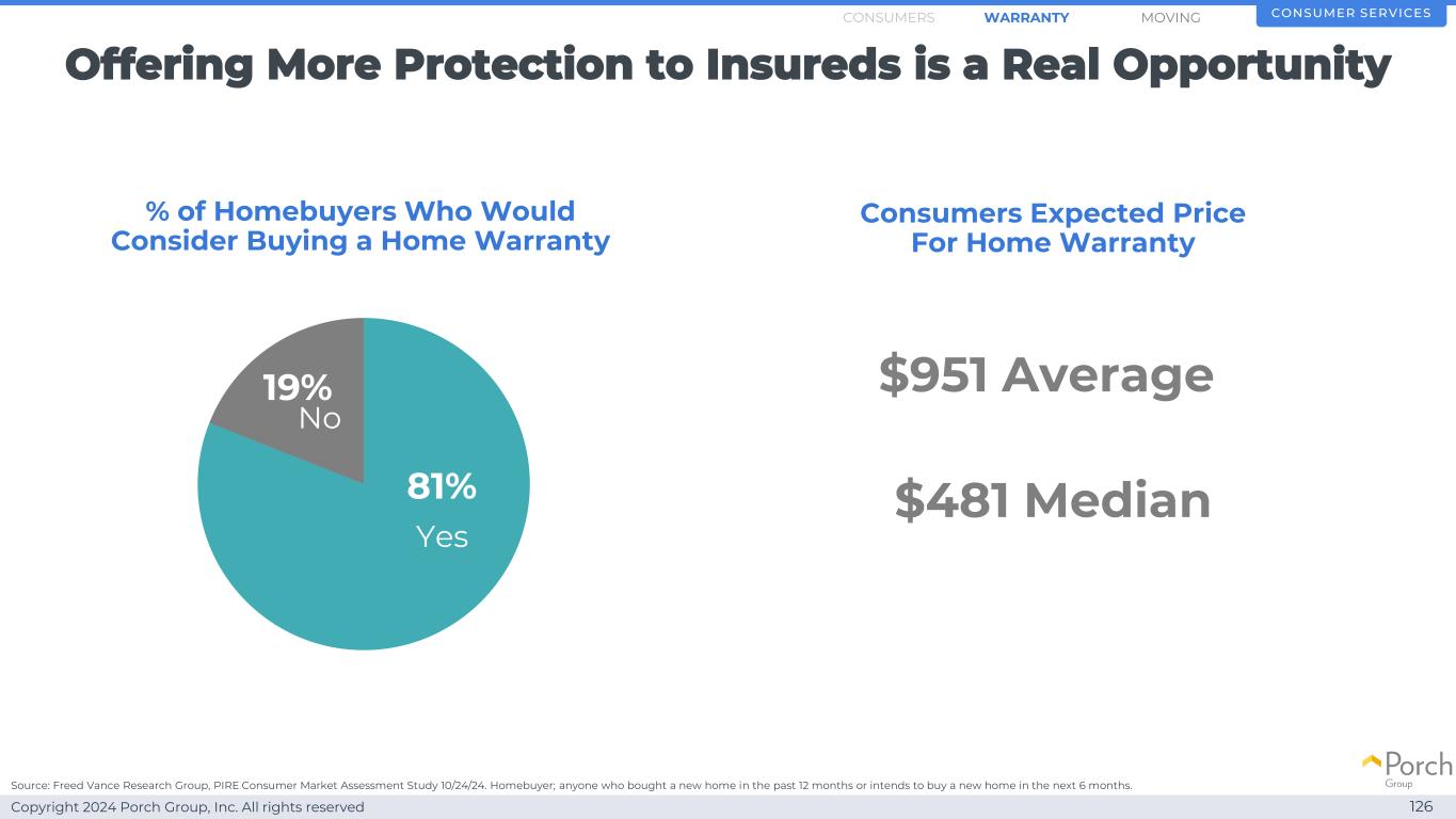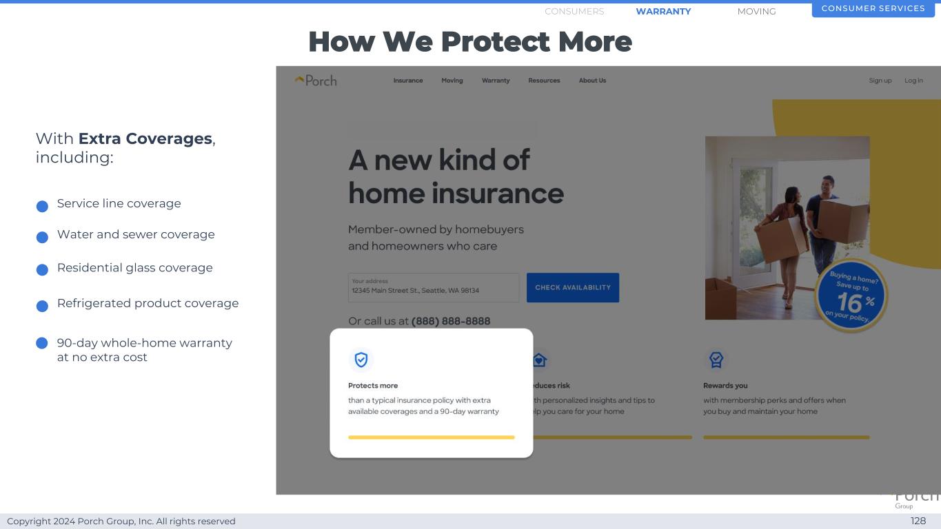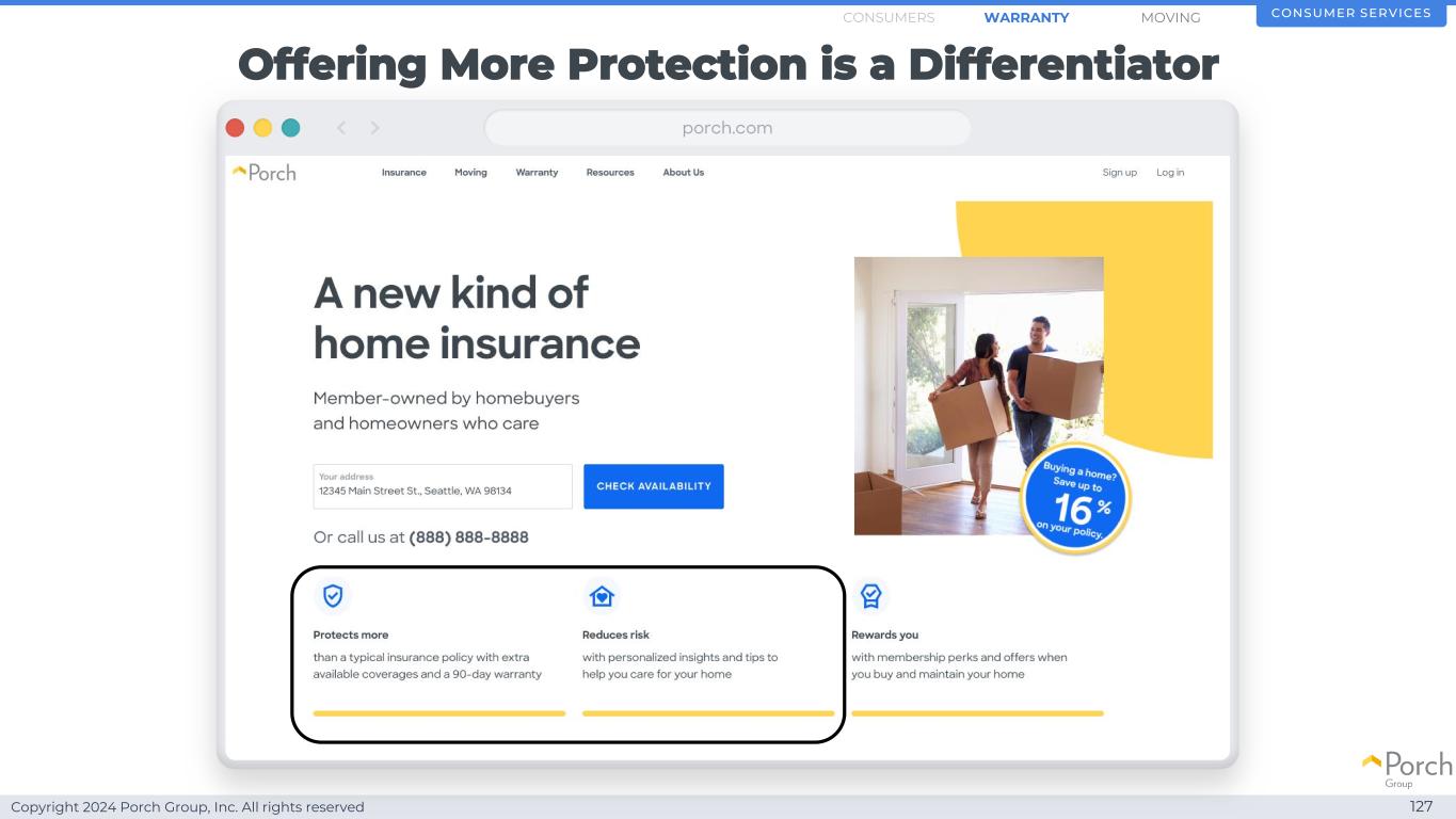 Copyright 2024 Porch Group, Inc. All rights reserved Offering more protection is a differentiator 127 Consumer Service SMOVINGWARRANTYConsumers