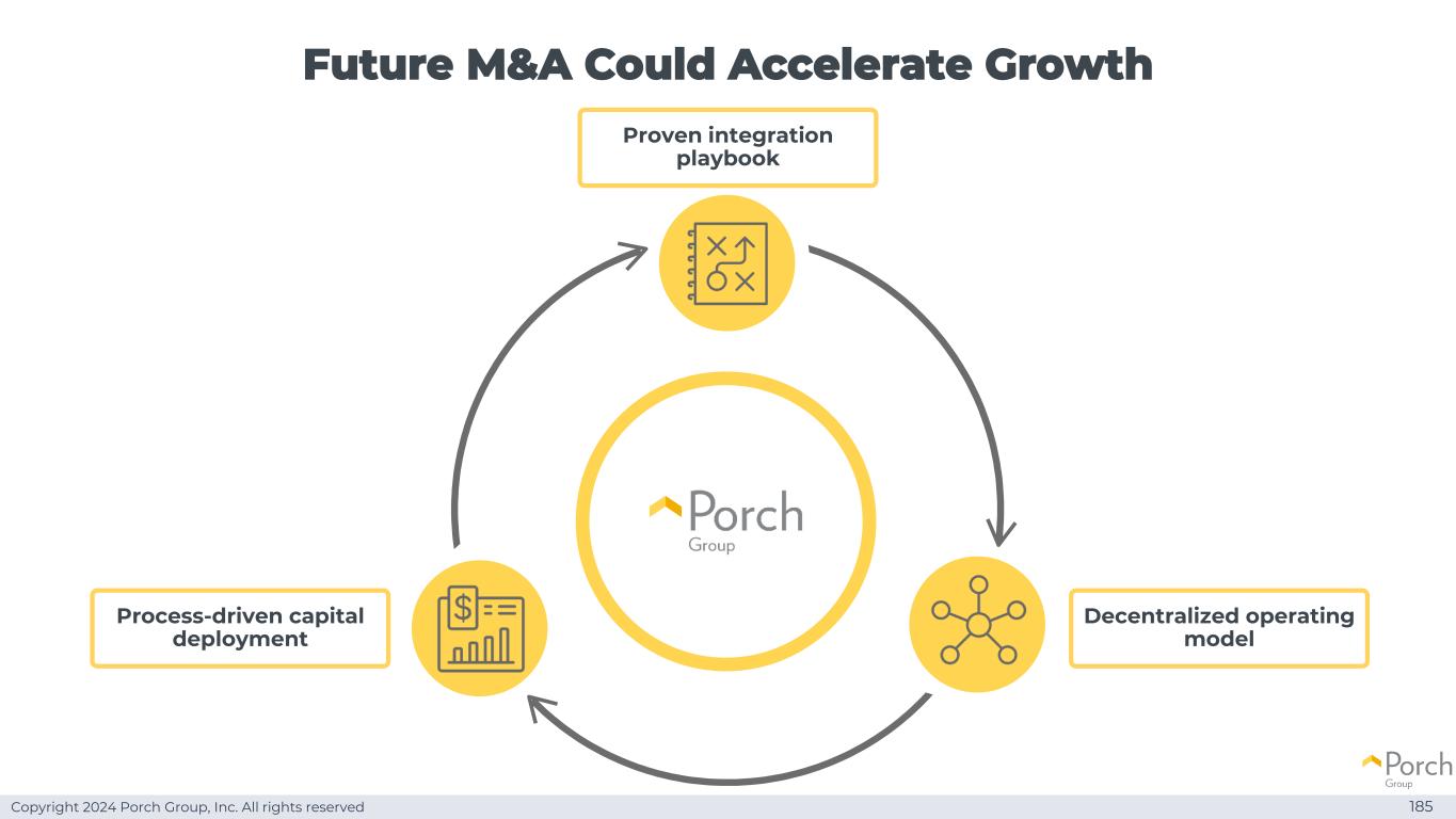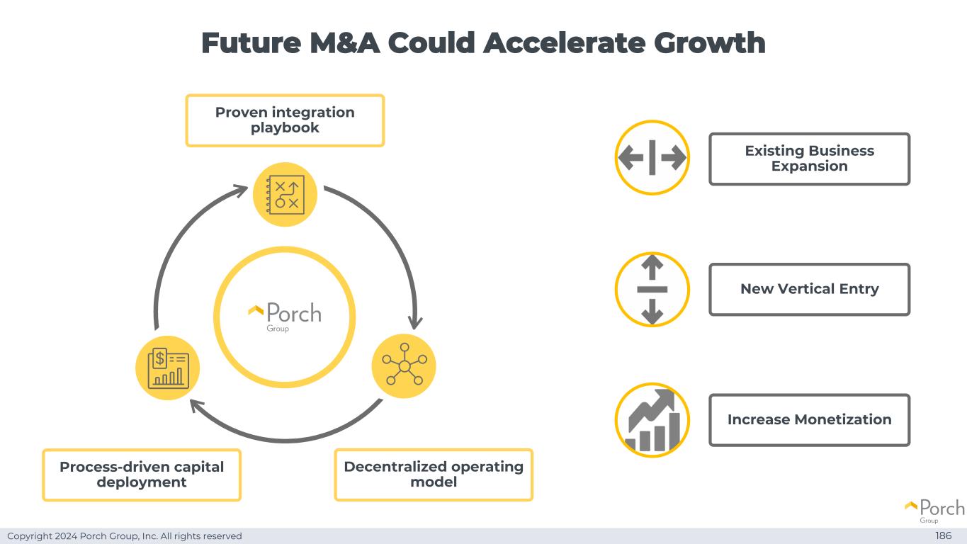 Copyright 2024 Porch Group, Inc. All rights reserved Future M & A could accelerate growth 186 Decentralized operation model Proven integration playbook process-driven capital deployment existing business expansion increases monetization new vertical entry