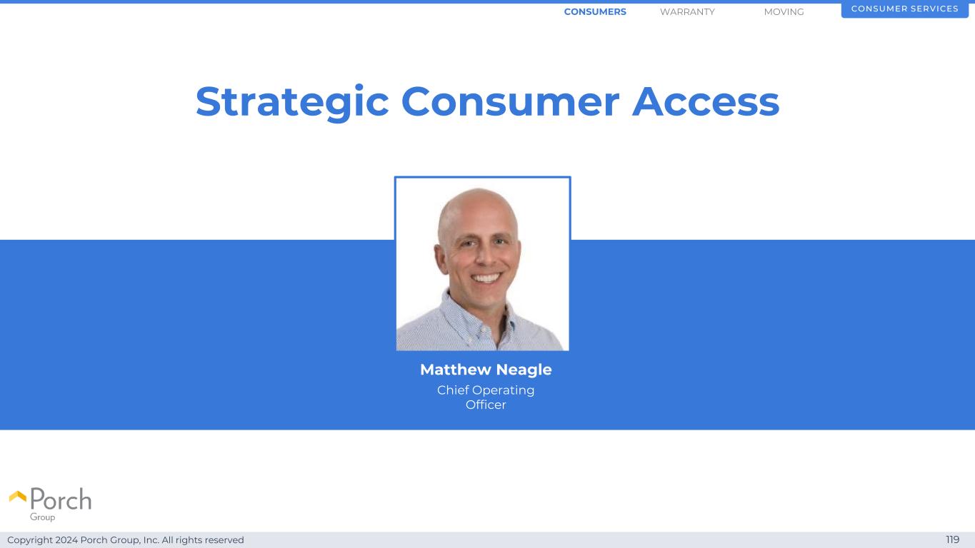 Copyright 2024 Porch Group, Inc. All rights reserved 119 Strategic Consumer Access Consumer Services Matthew Neagle首席运营官MOVINGWARRANTYConsumers